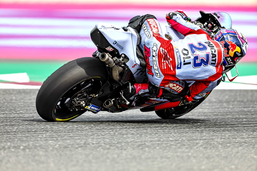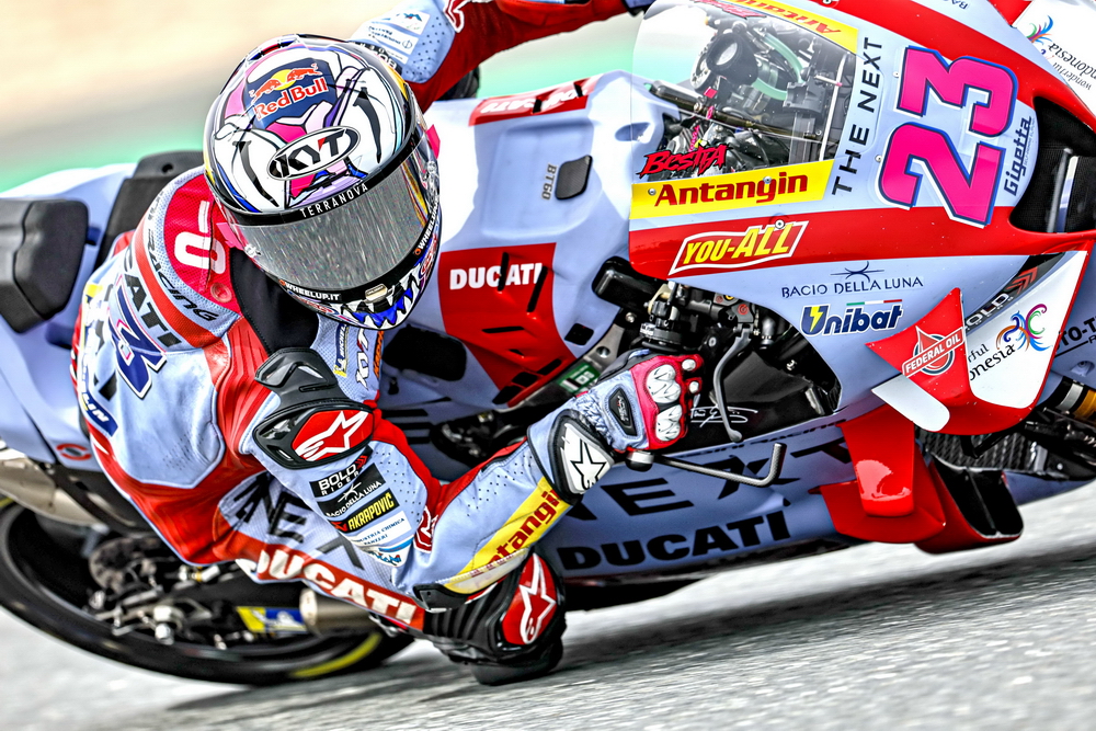 在昨天周五進行的 FP1,吉斯尼 MotoGP 車隊的兩位車手先是在 FP1 作了初步的熱身和調整賽車的設置,到夜間舉行 FP2 開始加速、不斷嘗試跑出更快的圈速。巴斯塔尼尼在兩節(jié)的練習里都跑了 14 圈,在 FP2 跑出了 1 分 54.013 秒、最大極速 354 km/h,綜合最佳圈速暫時排在了第 11 位。而在去年的時候,他在這條跑道上曾經跑出了 1 分 53.733 秒的最佳圈速。