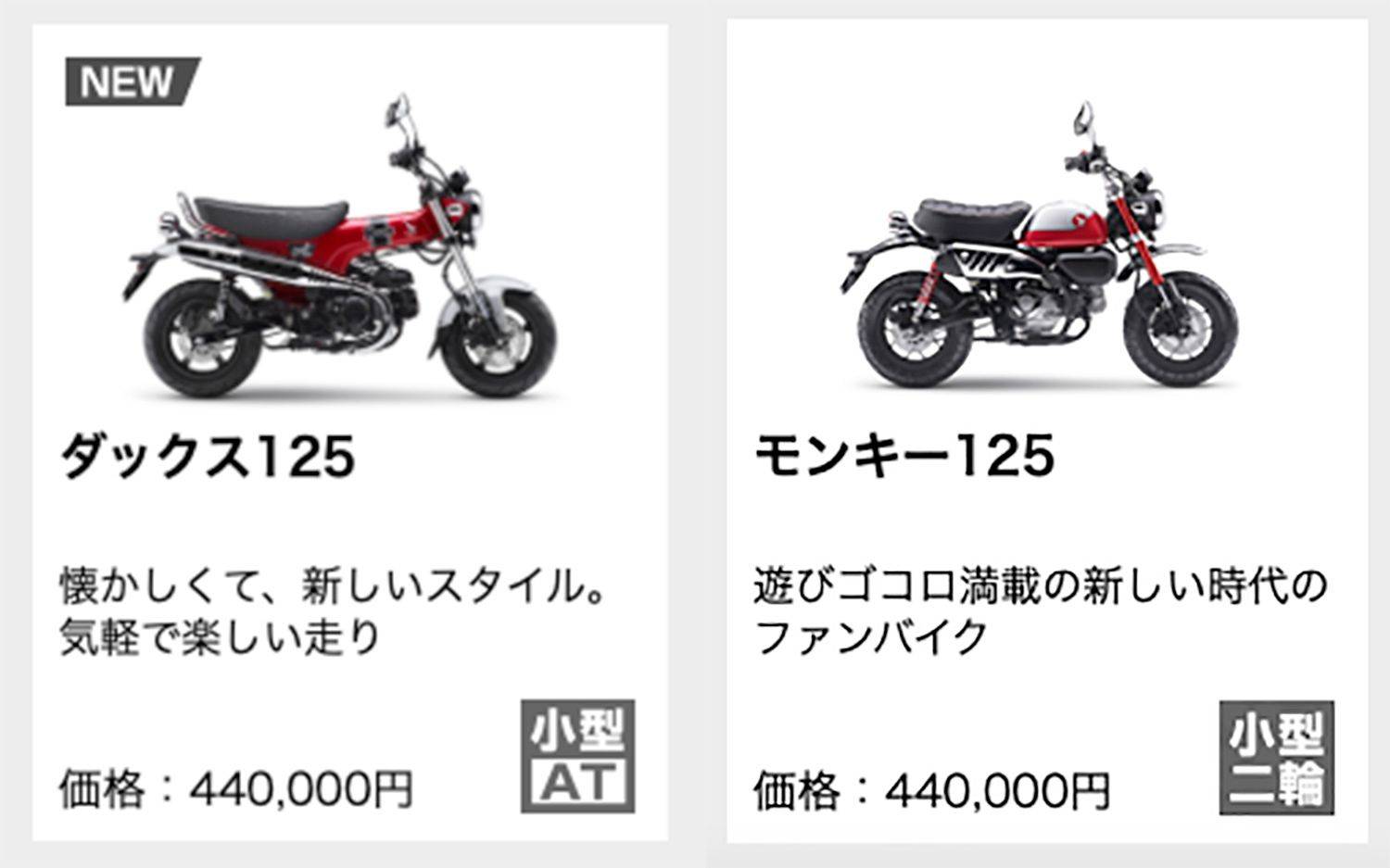 DAX 125在日本售價與MonKEY 125同樣為44萬日元