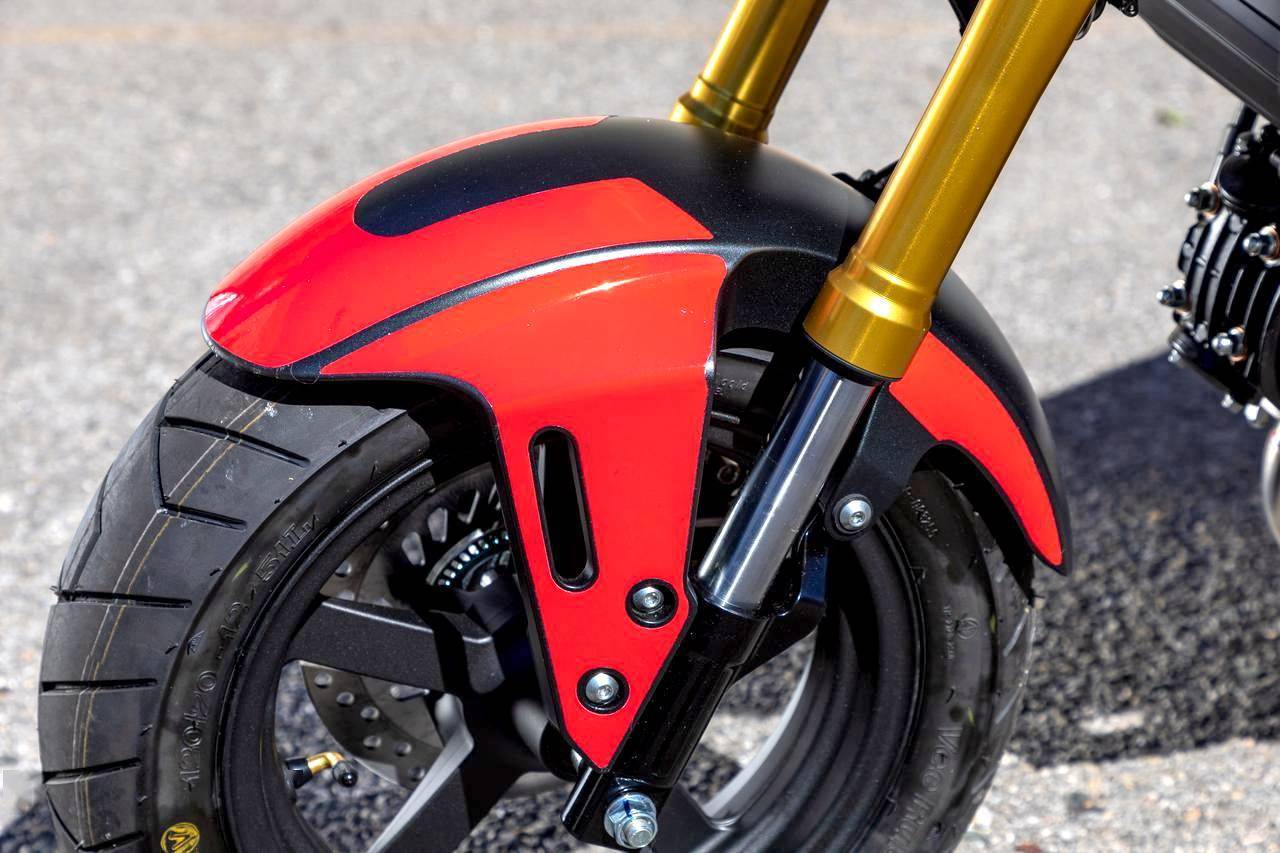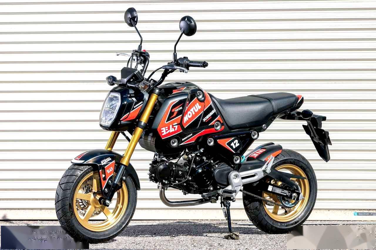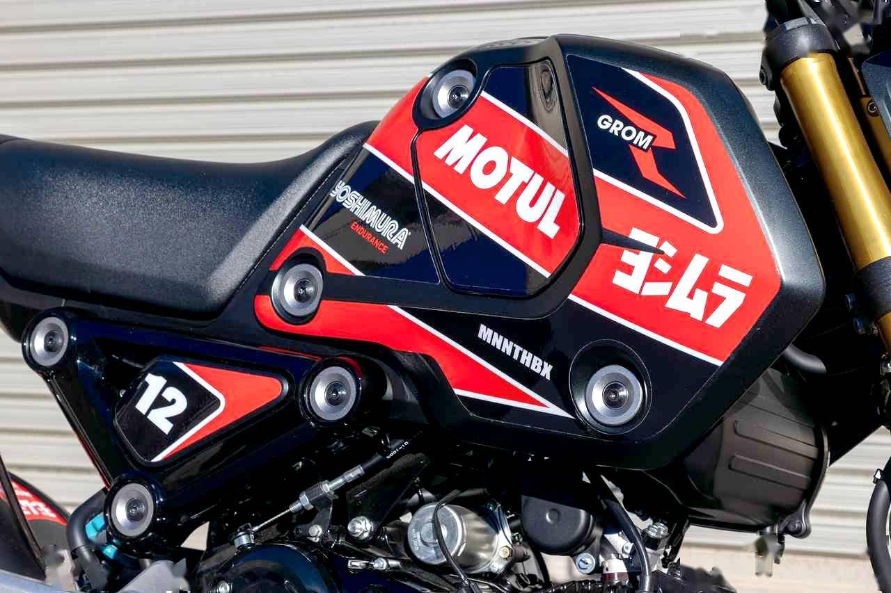 Legare Custom 所推出的這臺 Grom 2022 限量版,以北美版的 Grom 作為基礎(chǔ),標(biāo)志性的特點(diǎn),是采用了與 Honda 的超級跑車 CBR1000RR-R SP 相近的外觀圖案風(fēng)格。除了車體圖案之外,在配置上、還換裝了 Yoshimura 吉村美國分公司所生產(chǎn)的排氣系統(tǒng),金色的前后輪框(標(biāo)準(zhǔn)款的 Grom 日本本土版采用黑色的輪框)。此外,制作方還提供換裝了 Niton 可調(diào)后減震的版本供選購。