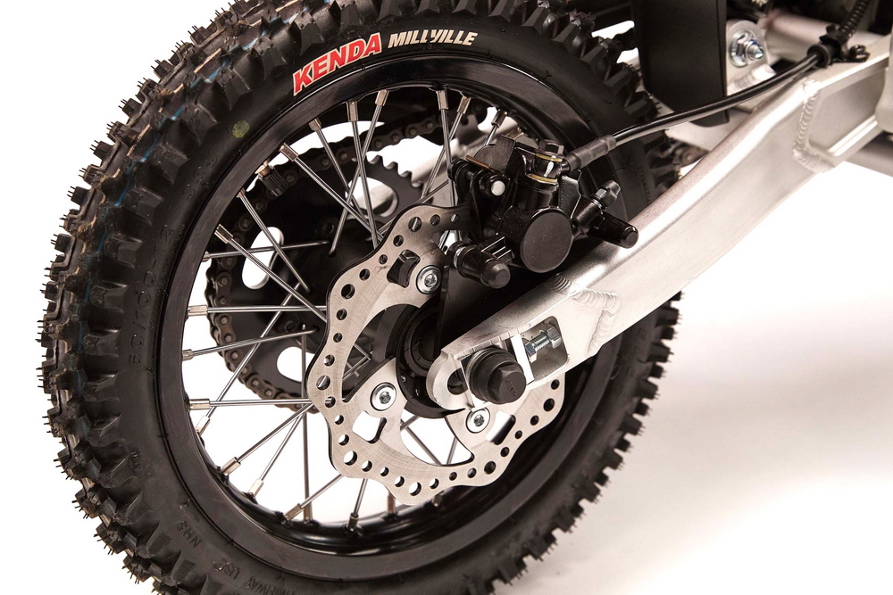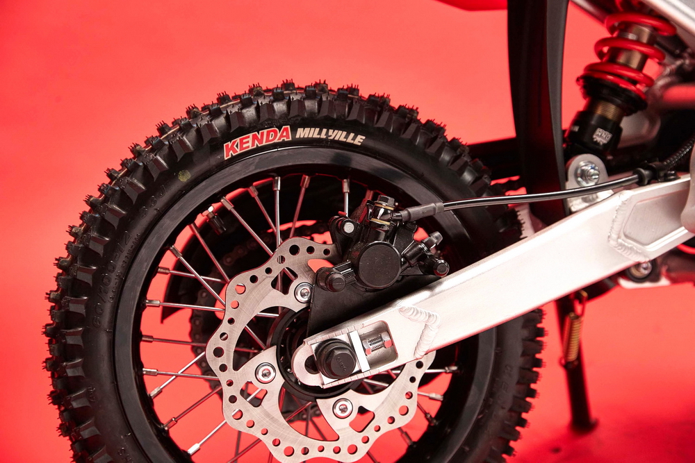 車體方面,采用一副鋁制的雙翼樑式車架,叉芯口徑為 33 mm 的正立式前叉、單筒式后減震,前后碟式的制動系統(tǒng),12 英寸直徑的車輪,全車重量 48 公斤。
