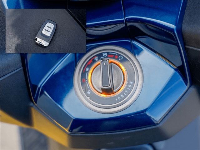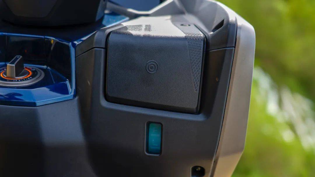 啟動(dòng)系統(tǒng)也為無鑰匙啟動(dòng)系統(tǒng),操作邏輯與常規(guī)無鑰匙系統(tǒng)稍有不同,啟動(dòng)時(shí)操作一樣,按下無鑰匙旋鈕,黃色燈環(huán)點(diǎn)亮即代表車輛解鎖,向右擰按鈕即可為整車通電,但是騎行結(jié)束后,將無鑰匙旋鈕擰回中間位置,無鑰匙系統(tǒng)并不會(huì)自動(dòng)鎖定,需要人帶著鑰匙離開車輛差不多5米以上,無鑰匙系統(tǒng)才會(huì)自動(dòng)鎖定;或者你也可以掏出遙控器,按遙控器上的鎖定按鈕來鎖車。