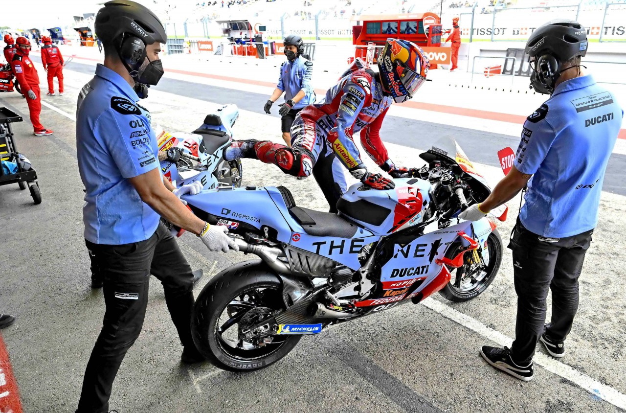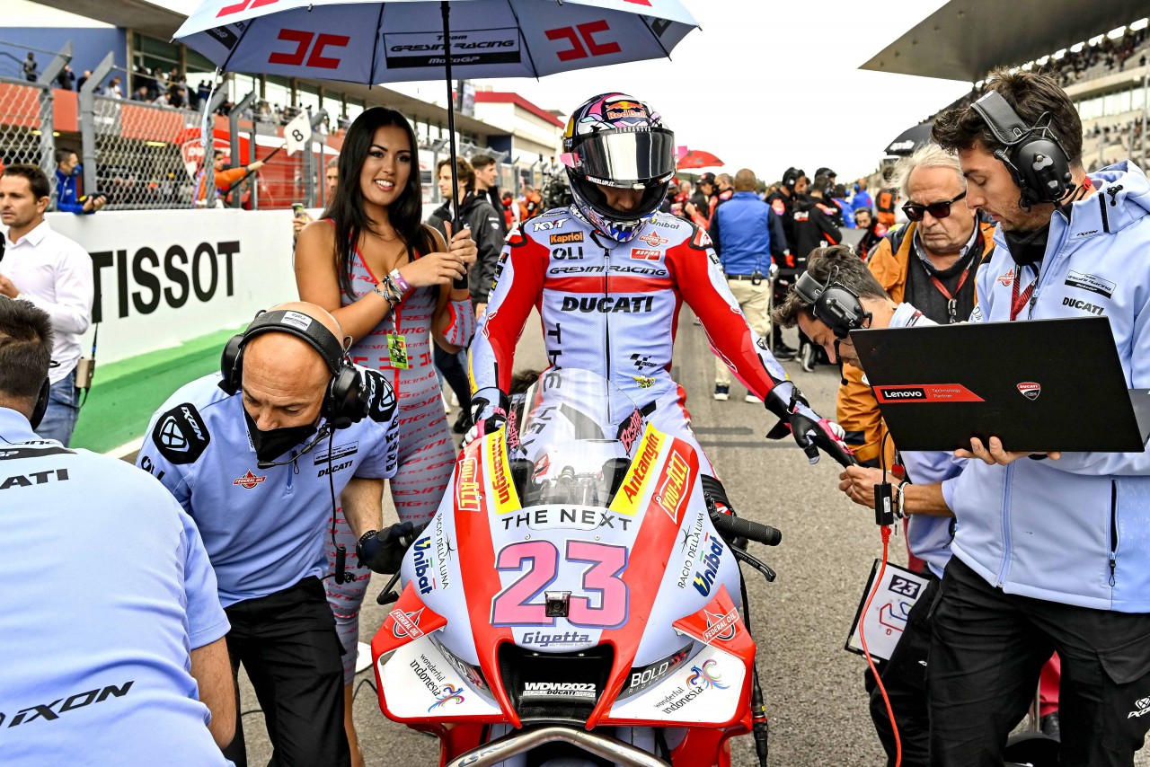 福建友力企業(yè) YOU-ALL 所支持的 Gresini Racing 吉斯尼 MotoGP 車隊(duì)兩位車手,23 號車的巴斯塔尼尼(Enea Bastianini)和 49 號車的吉南托里奧(Fabio Di Giannantonio),在惡劣天氣影響之下的排位賽里、努力加速,最后吉南托里奧排在正賽發(fā)車位置的第 15 位,在 Q1 摔車的巴斯塔尼尼則排在了第 18 位起步。