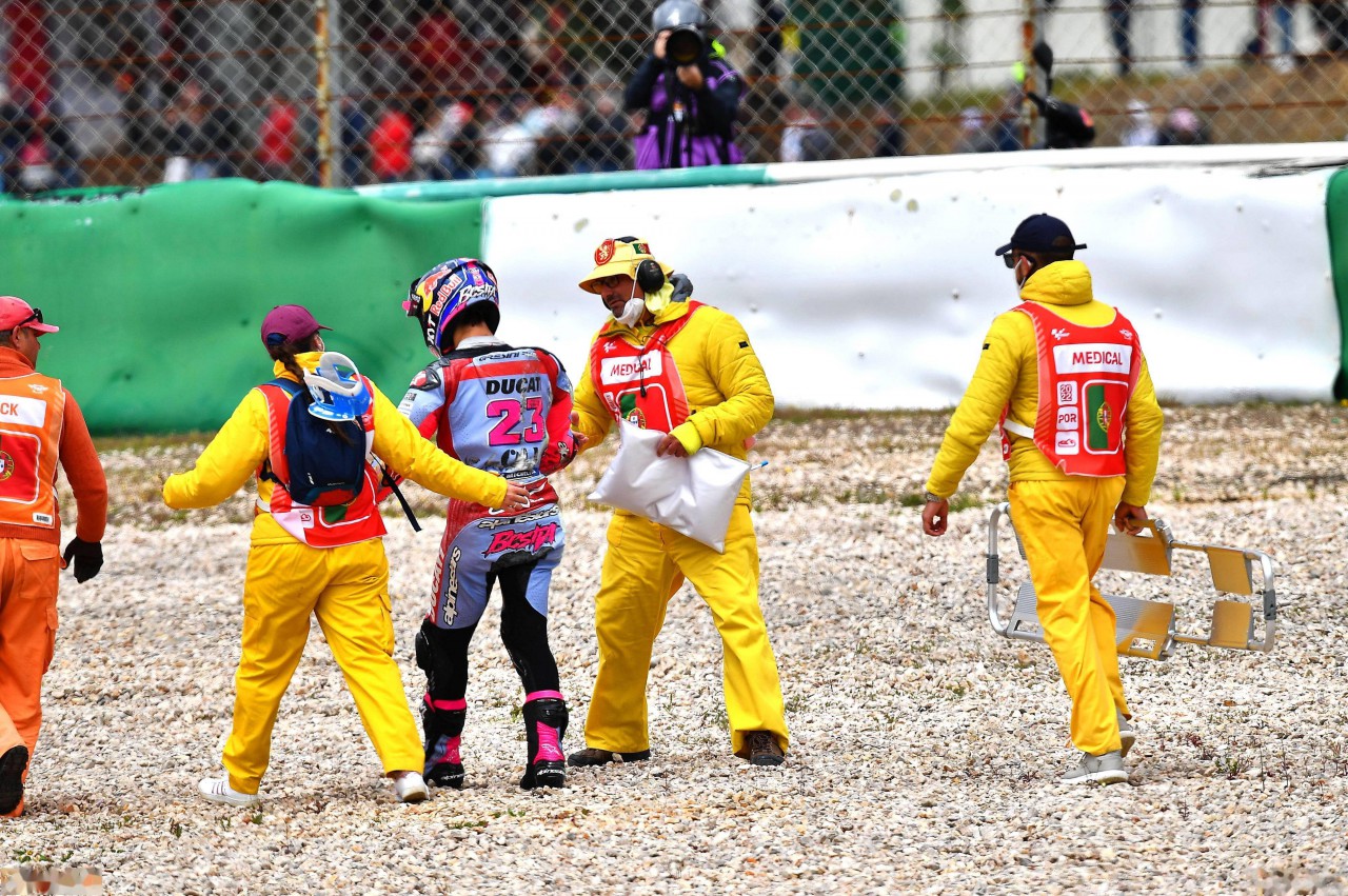 隨后的幾圈里,他與 HRC 陣營糾纏在一起、連續(xù)幾圈展開了 V4 機(jī)器的大戰(zhàn)。但到了第 10 圈的 T8,開油稍微偏大導(dǎo)致他被摔出了場外,提前結(jié)束了這次葡萄牙站的比賽。這是他在本賽季的首次退賽,而幸運(yùn)的是他能夠自己重新站起來,身體沒有受到太大的傷害。