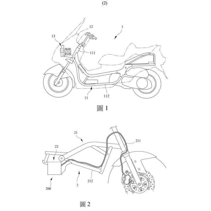 最新公告的專利中,主要講述ABS電腦在不同類型的車款上的擺放位置,除了大家熟悉的大羊、踏板車款、檔車示意圖外,更吸引我們目光的絕對(duì)是造型與RevoNEX有極高相似度的電動(dòng)機(jī)車ABS專利,透過(guò)圖中信息可以看到ABS電腦將會(huì)安裝在車輛鵝頸后方,并隱藏在車架下方空間。
