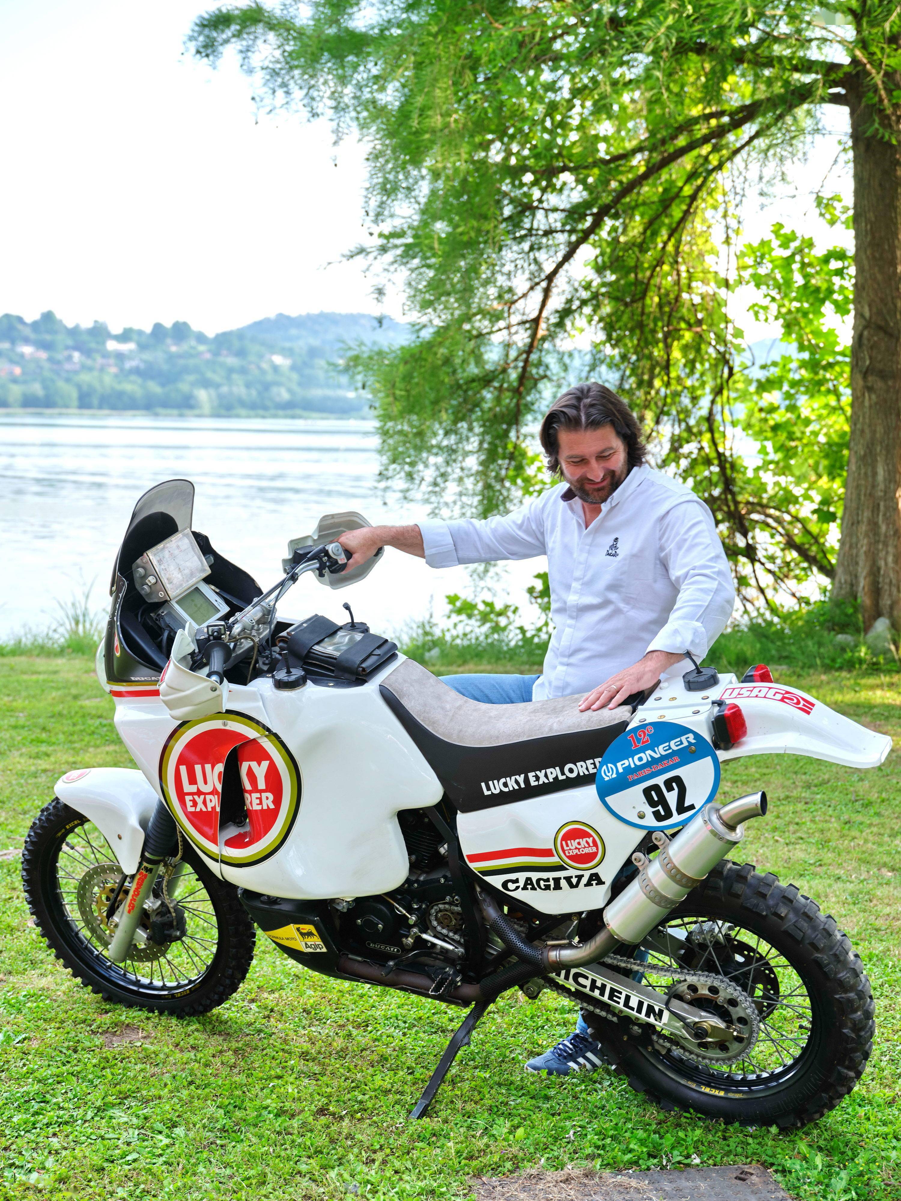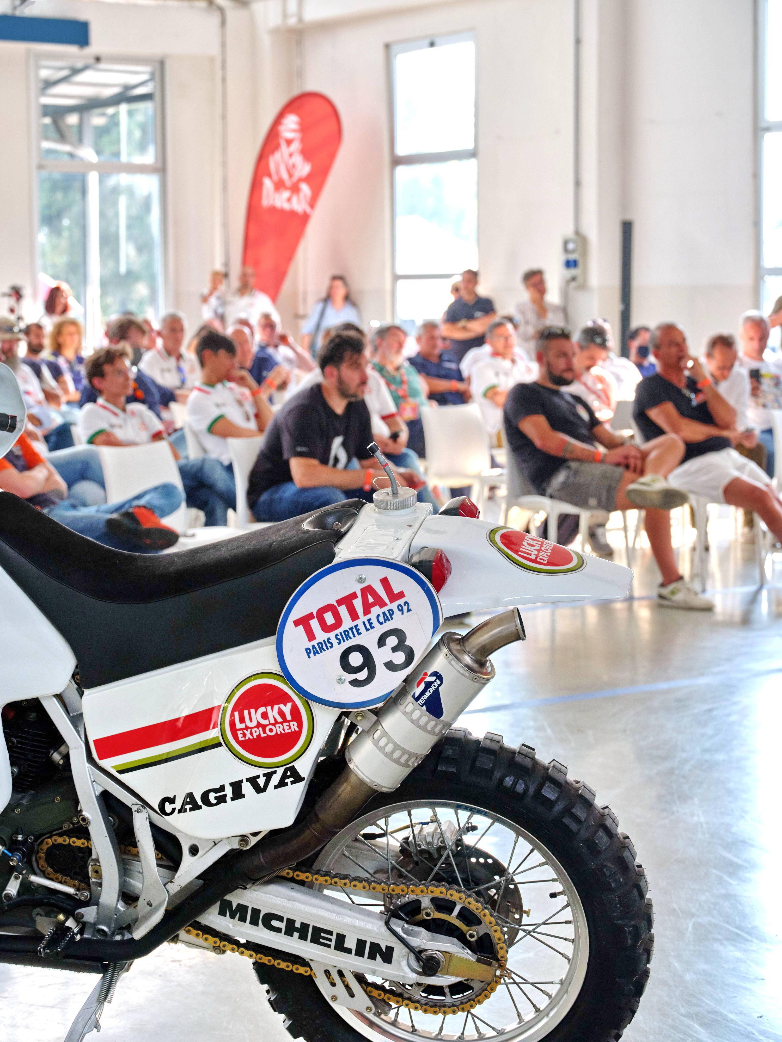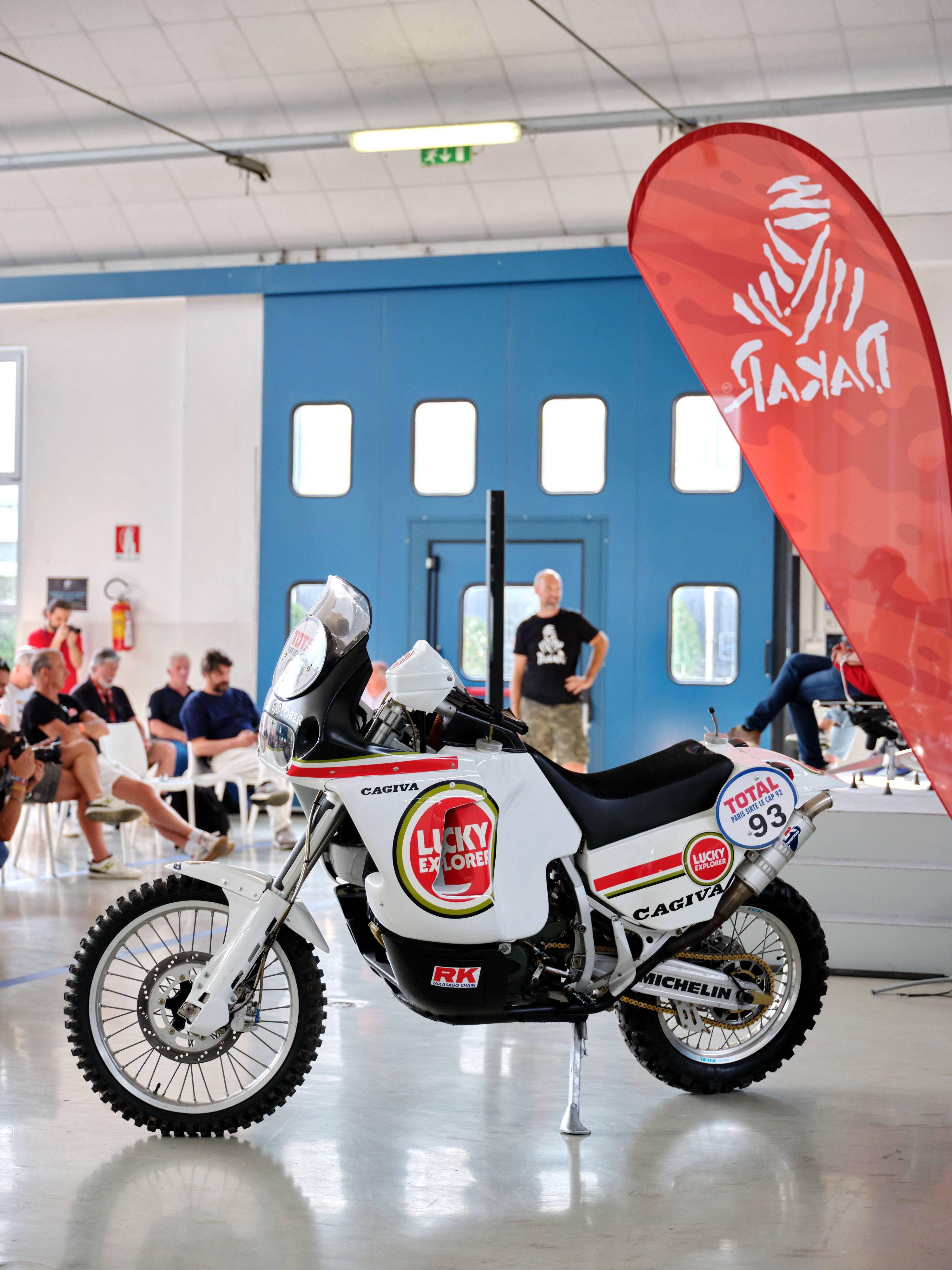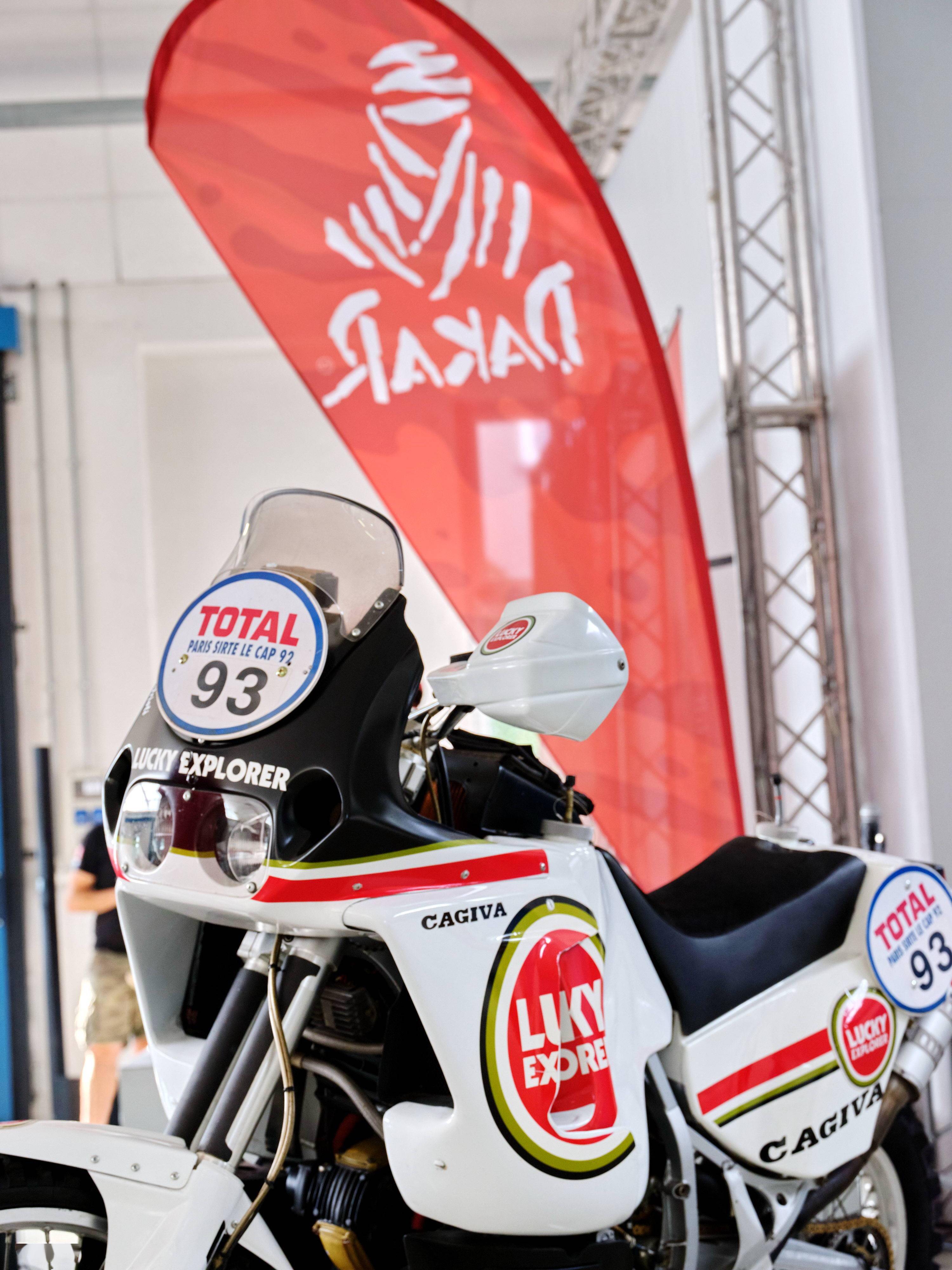 活動(dòng)中,廠方展示了他們旗下子公司品牌 Cagiva 卡吉瓦在上世紀(jì)九十年代、兩次(1990 年和 1994 年)奪得巴黎 - 達(dá)喀爾拉力賽摩托車(chē)組冠軍的賽車(chē) Elefant 900,而當(dāng)時(shí)的參賽車(chē)隊(duì)名為 Lucky Explorer “ 好彩探索者 ”,車(chē)手是來(lái)自意大利的奧里奧利(Edi Orioli)。