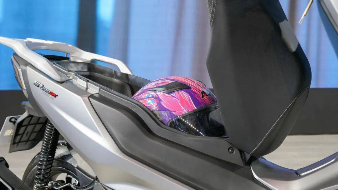 此外,SR150GT車架帶有中梁結(jié)構(gòu),車架整體剛性更強(qiáng)且具有更好的抗扭性能,能夠大幅度提升整車操控質(zhì)感,滿足SR150GT追求運(yùn)動(dòng)騎行的產(chǎn)品需求。同時(shí)中梁結(jié)構(gòu)也能將油箱安置其中,在不影響座桶空間的情況下還能有8L的油箱容積,續(xù)航能力比較可觀。實(shí)測(cè)座桶內(nèi)可容納一頂全盔,還有富余空間可容納一些騎行裝備。