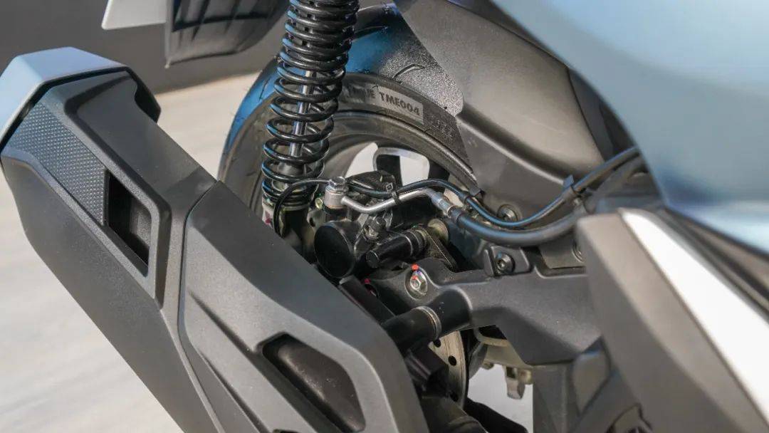 尤其值得一提的是新車在安全性配置方面做出的努力,除了上述的雙通道ABS以外,SR150GT還引入了同級(jí)別車型少有的TCS牽引力控制系統(tǒng),該系統(tǒng)可以在檢測(cè)到驅(qū)動(dòng)輪因動(dòng)力輸出導(dǎo)致打滑時(shí)介入,限制發(fā)動(dòng)機(jī)動(dòng)力輸出從而降低驅(qū)動(dòng)輪轉(zhuǎn)速消除打滑現(xiàn)象,配合ABS系統(tǒng)將進(jìn)一步提升車輛的行駛安全性。同時(shí)輪胎也采用了抓地力不俗的滕森高抓輪胎,前110-70-14,后130-70-13的前大后小輪轂搭配也使得這臺(tái)車有著更強(qiáng)的適應(yīng)性。