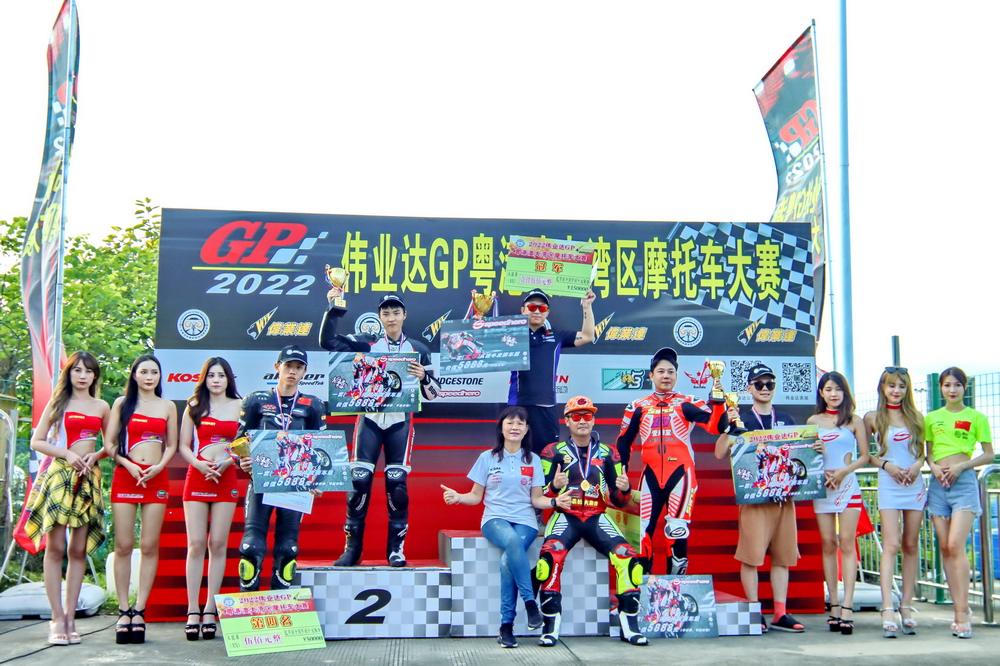 最終,蒙醒斌以?xún)晒?jié)比賽的第一,奪得了2022 偉業(yè)達(dá) GP 粵港澳大灣區(qū)摩托車(chē)大賽恩平站、改裝街車(chē)公開(kāi)組的冠軍。有著出色發(fā)揮的王興源奪得了亞軍;100 號(hào)車(chē)的李俊、馮梓倫、31 號(hào)車(chē)的鄭煒林,分別獲得了第三到第五名。