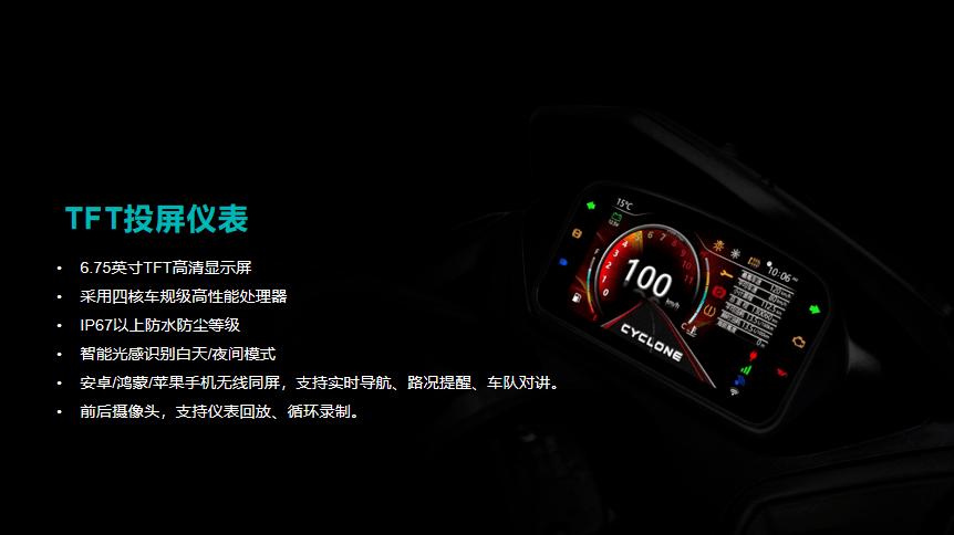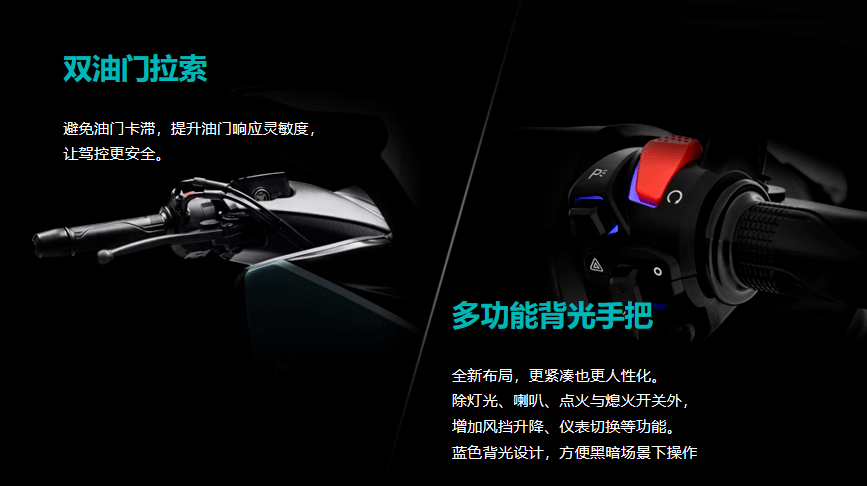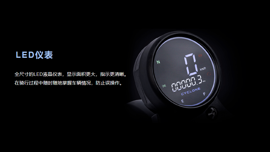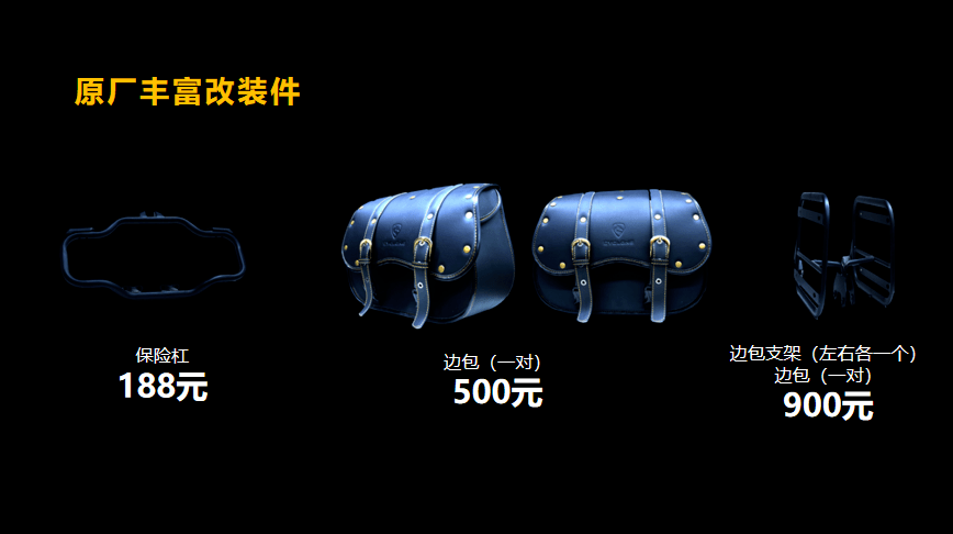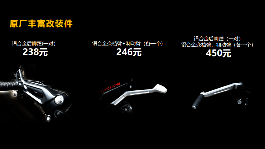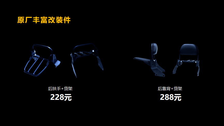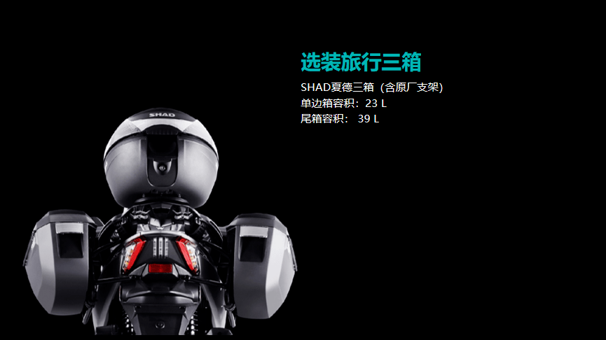 其他標(biāo)配的配置有無鑰匙啟動、17升超大油箱,鋁合金側(cè)支架、博世雙通道ABS、全LED燈光、前120后140真空胎等,與RT3配置相同,另有豐富的選裝件。