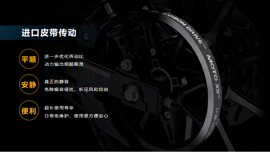 整車輕量化設(shè)計,進(jìn)口皮帶傳動、滾針軸承后平叉,標(biāo)配雙通道ABS等配置,大幅提升騎行品質(zhì),掌控運動新樂趣。
