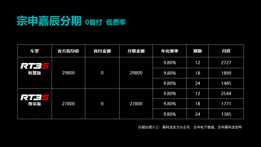賽科龍RT3S價格正式公布了,標(biāo)準(zhǔn)版售價27800元,高配版售價29800元。