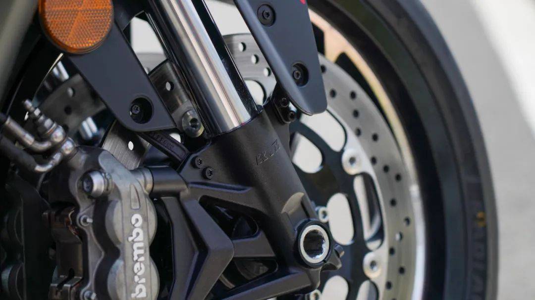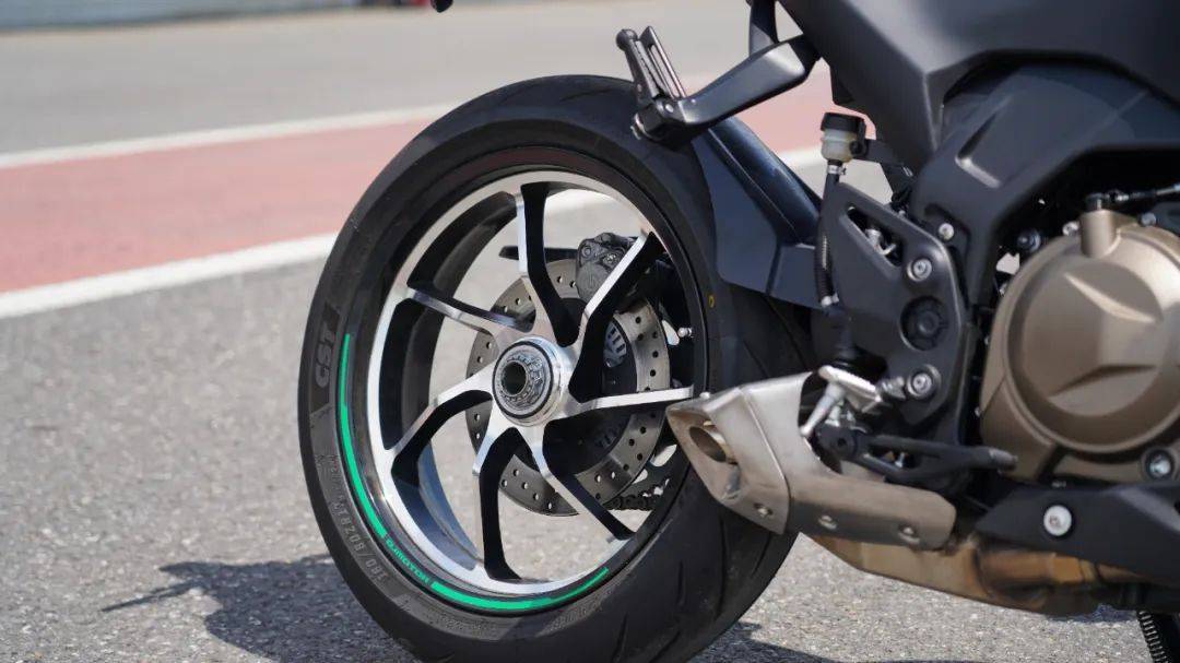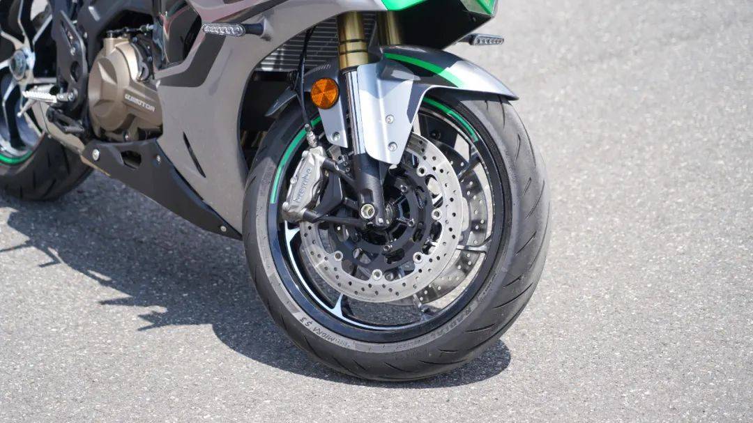 行走系統(tǒng)部分同樣值得說道,前KYB倒置減震具備多段可調(diào)功能,后中置減震;前120-70-17,后160-60-17輪胎配正新S3輪胎。