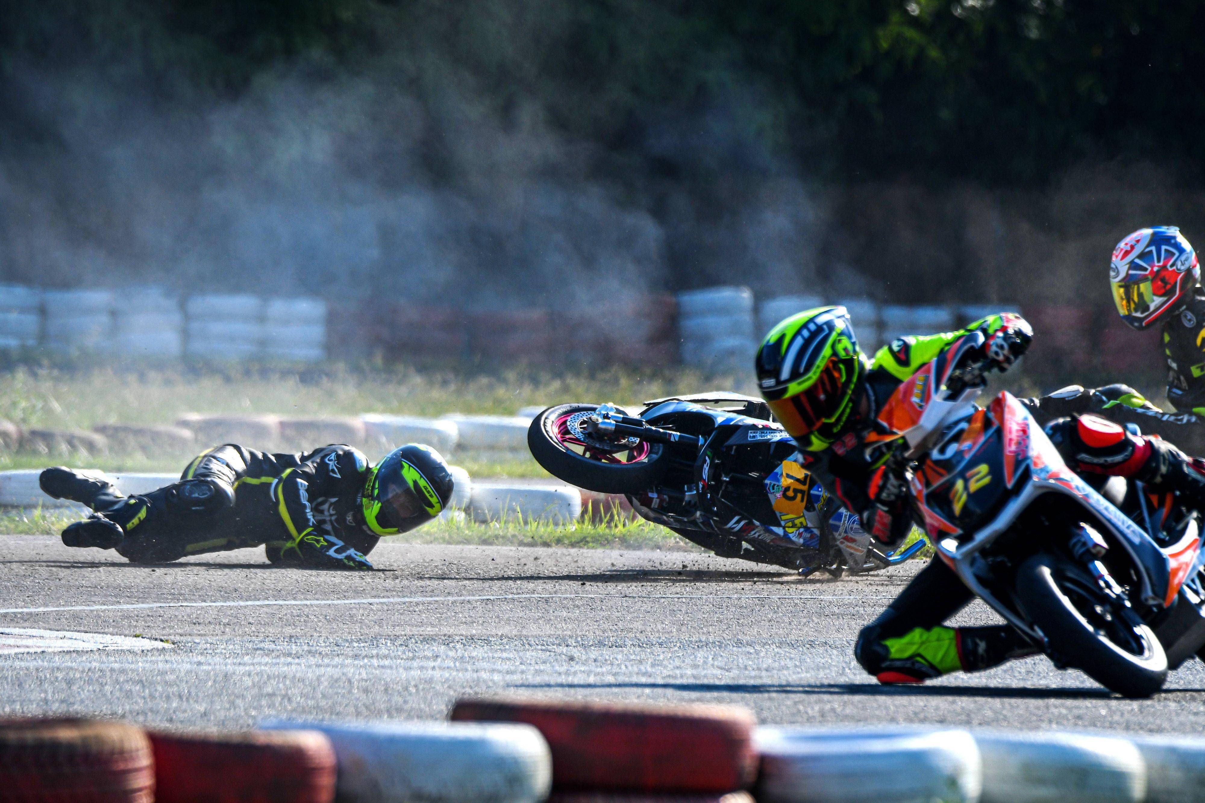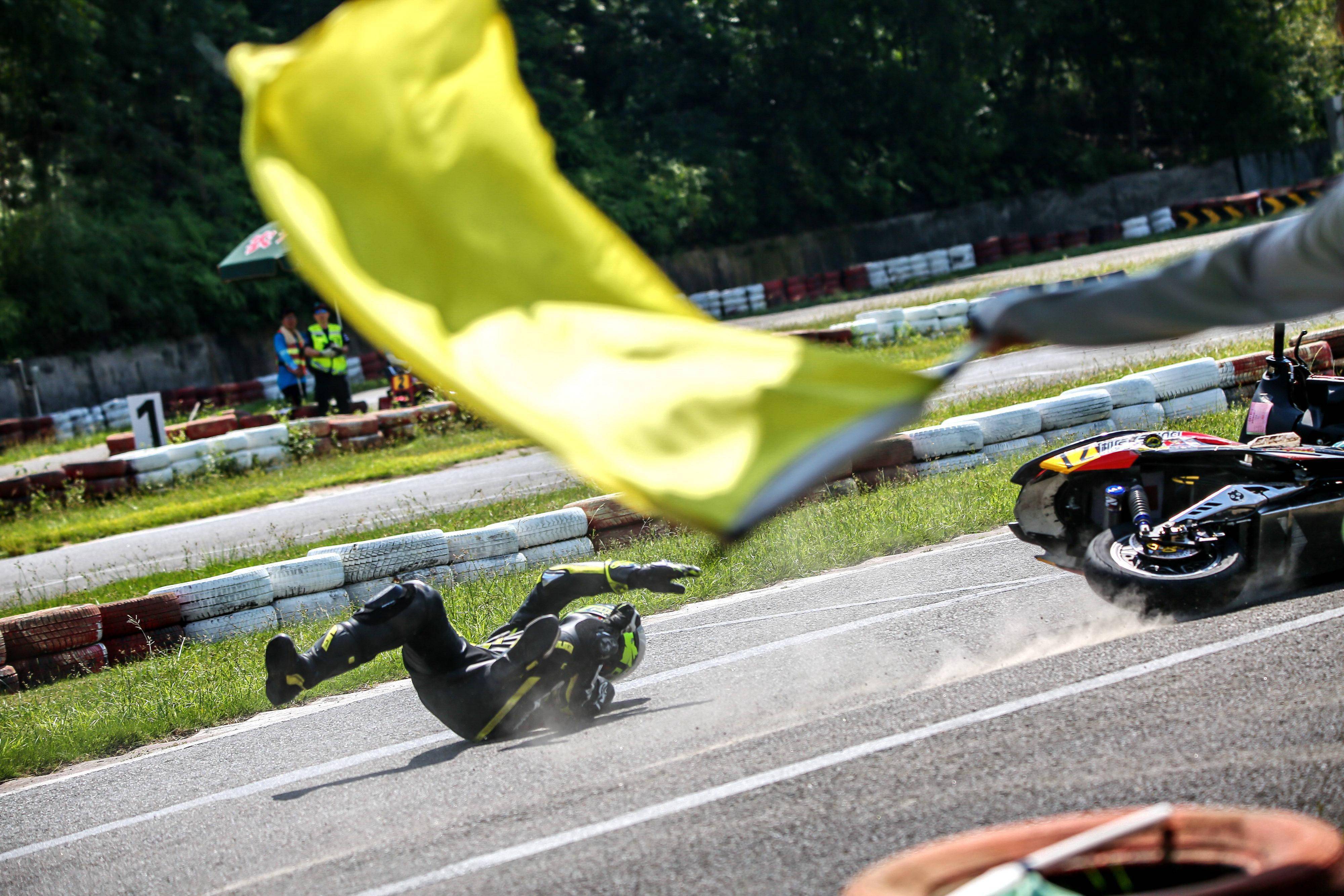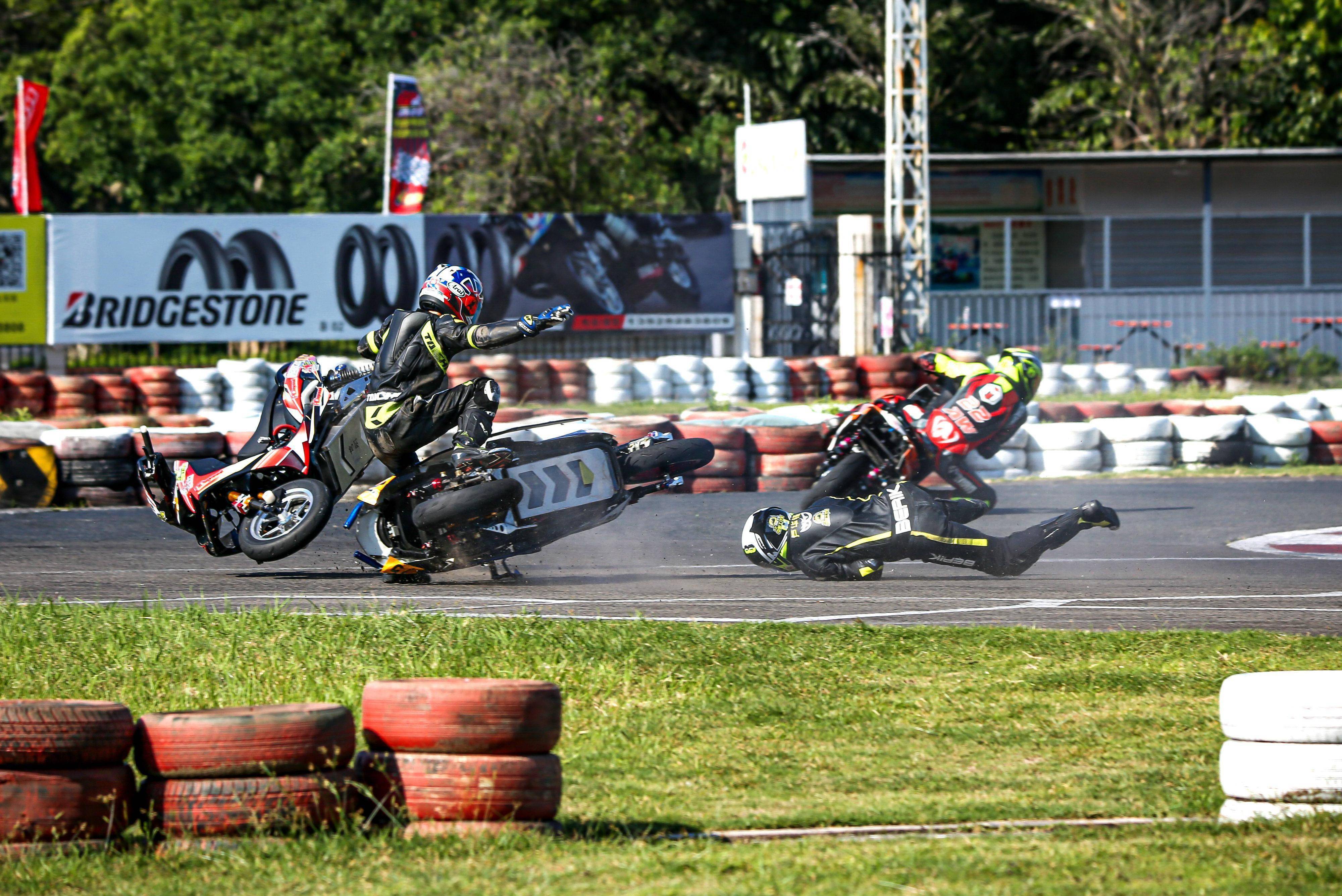 第一節(jié)的比賽(決賽一)、賽程為 8 圈。起跑之后不久,12 號(hào)車(chē)的盧華鋒與 75 號(hào)車(chē)的梁家錢(qián)就碰到了一起,但兩人馬上扶起賽車(chē)、很快地又重新投入到賽場(chǎng)中去。
