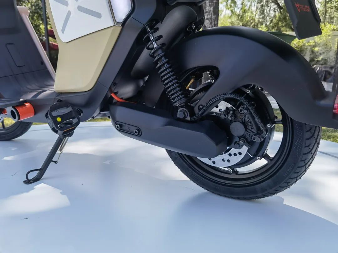 獨(dú)特的懸浮式前護(hù)板與進(jìn)氣格柵進(jìn)行連接,在有效阻隔泥沙灰塵等雜物的同時(shí),更可以幫助小牛電動(dòng)SQi的車身內(nèi)部進(jìn)行散熱。17寸超大輪徑鎂合金輪轂和中置避震,超輕的簧下質(zhì)量,為小牛電動(dòng)SQi帶來跑車級(jí)的操控質(zhì)感。