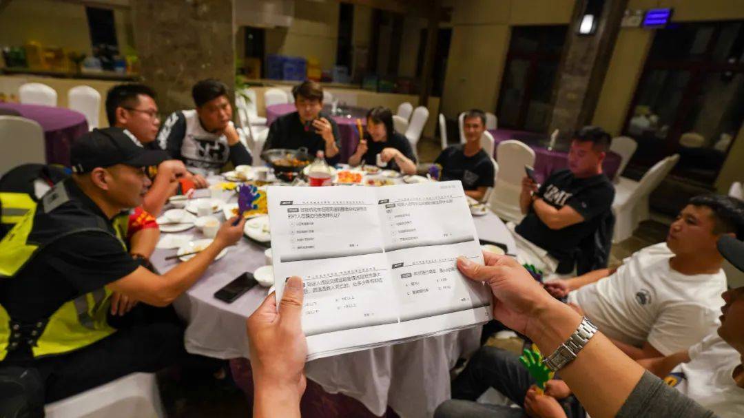 最后自然少不了一頓豐盛晚餐,期間還進(jìn)行了科目一的答題競(jìng)賽,讓大家重溫安全駕駛文明騎行的考試內(nèi)容。