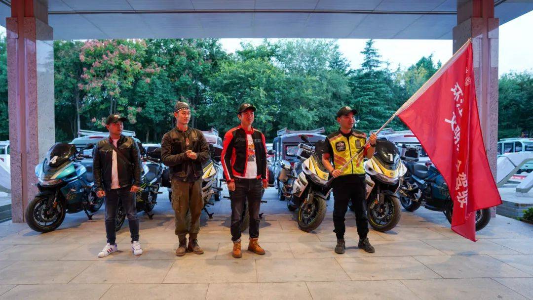 宿遷的車友將安全駕駛文明騎行的旗幟傳遞給徐州的車友。