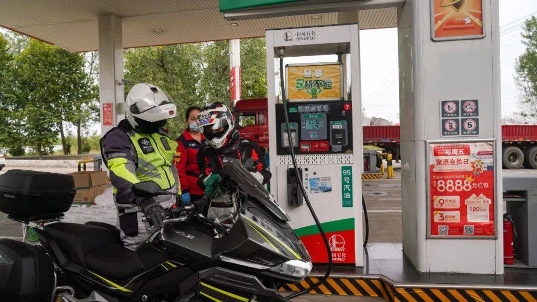 途中加油,當然這不是一輛傑750加了611元的汽油,而是8輛車每天的一次加油,據(jù)之前的宿遷站的隊員說,傑750還算比較省油,120公里的路程只掉了一格油,滿箱18升油,續(xù)航400公里每問題。