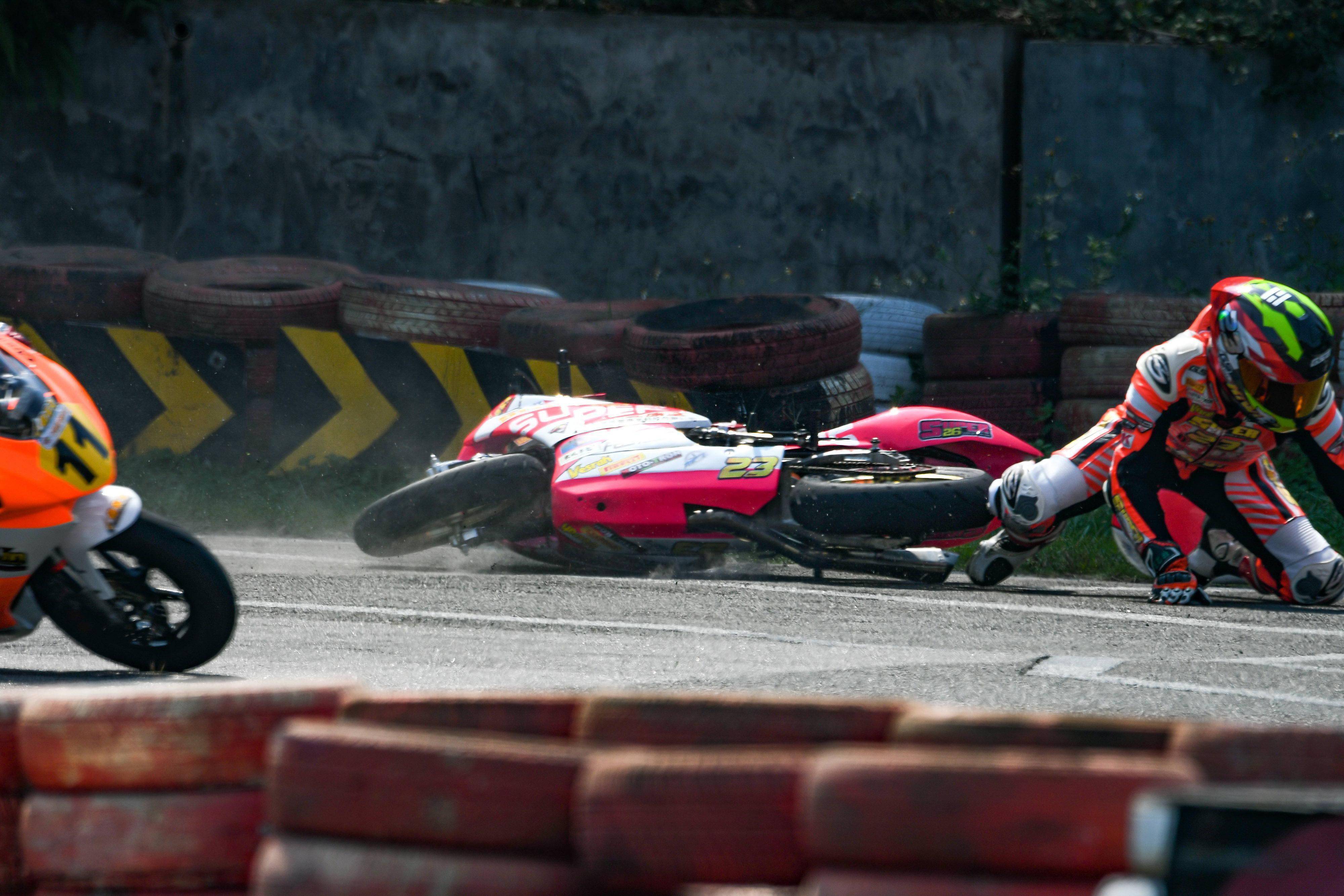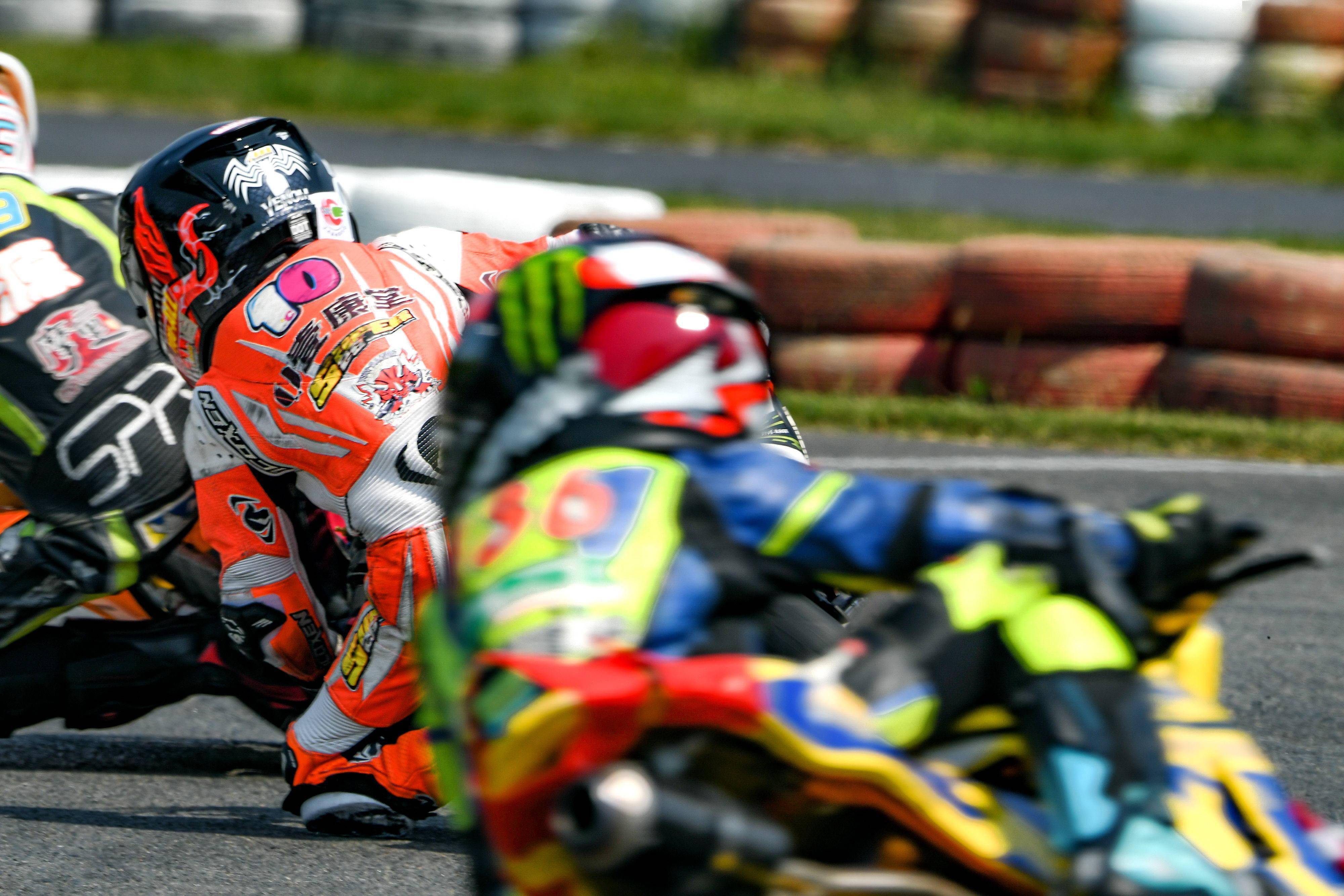 MiniGP 150 公開(kāi)組 A 組的第一節(jié)比賽,SUPER-26 車隊(duì)的 23 號(hào)車陳鵬基、99 號(hào)車詹駿浩都有著一個(gè)不錯(cuò)的開(kāi)局,并為現(xiàn)場(chǎng)觀眾奉獻(xiàn)了精彩的肉搏戰(zhàn)畫面。但先后發(fā)生的摔車意外,以及詹駿浩在最后一圈的機(jī)械故障,讓他們無(wú)緣于理想的成績(jī)。