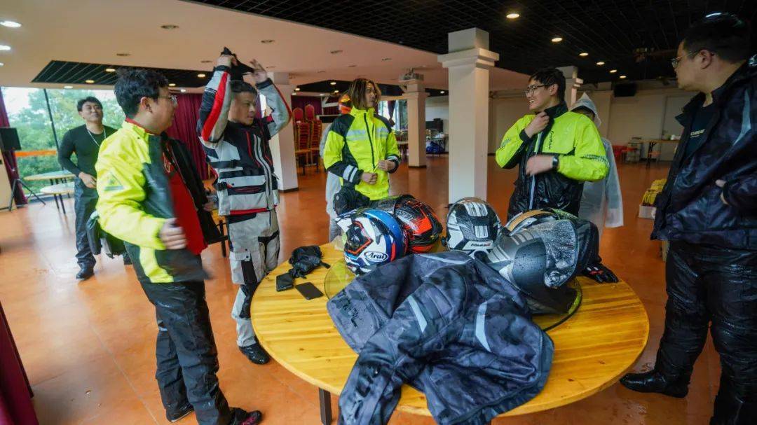鹽城的摩友將文明騎行的旗幟傳遞給南通的接替摩友,隨后車隊開始向蘇州太湖一號露營地進發(fā)。