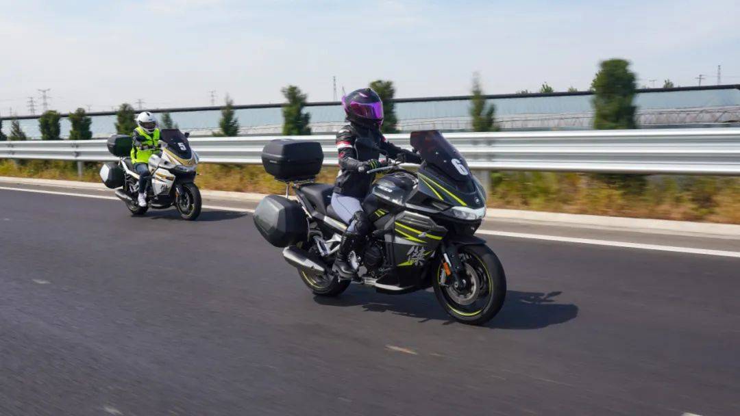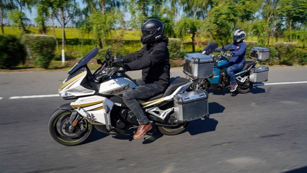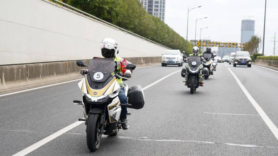 8輛杰迪傑750,由4名蘇州摩友(固定)、4名南京資深摩友(每到一站換四位當?shù)啬τ眩┓謩e駕駛,緩緩駛?cè)氲缆?,開始了今天南京到揚州的“安全駕駛、文明騎行”之旅。