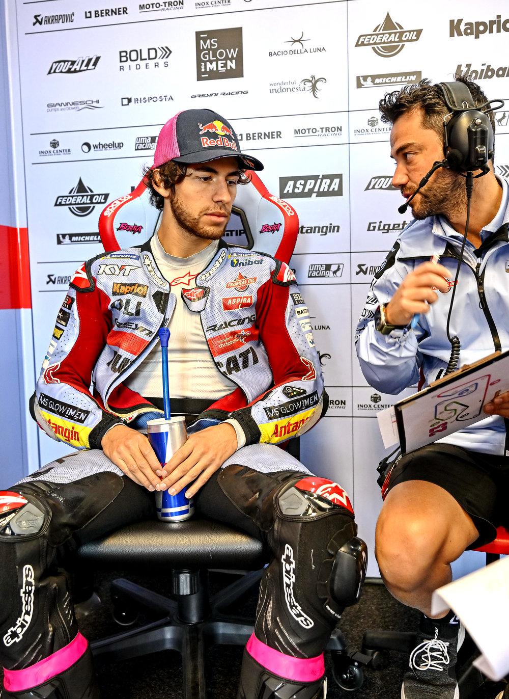 吉南托里奧的情況則不太樂觀:FP2 剛過半的時候,他在 T2 摔車,幸好沒有受傷。最終他跑出了 1 分 31.762 秒的最佳圈速,暫時排在第二十三位。