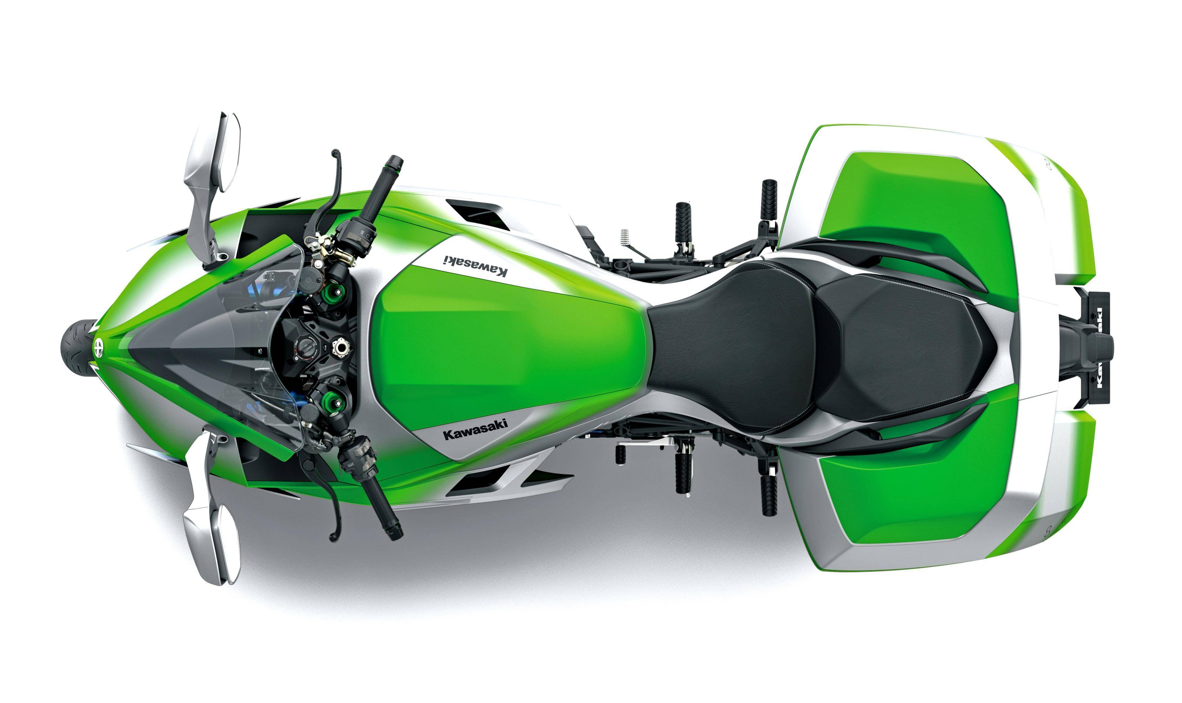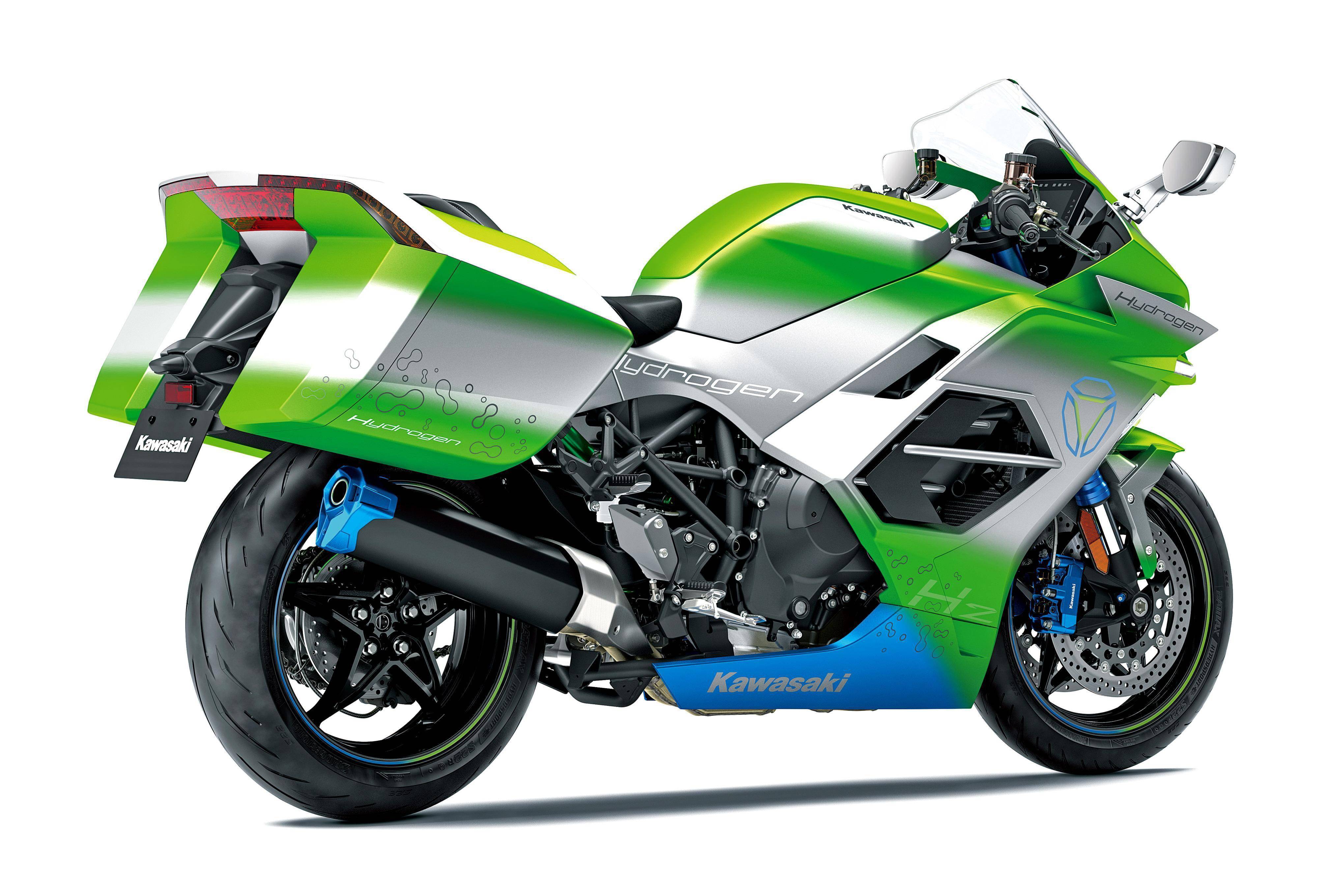 燃料氫動(dòng)力單元的 H2 Hydrogen 原型車,以搭載增壓發(fā)動(dòng)機(jī)的 Ninja H2 作為基礎(chǔ)改造而成,是廠方的技術(shù)試驗(yàn)性論證原型車,以壓縮氣態(tài)氫作為燃料、采用缸內(nèi)直噴,是這副機(jī)器的特點(diǎn)。