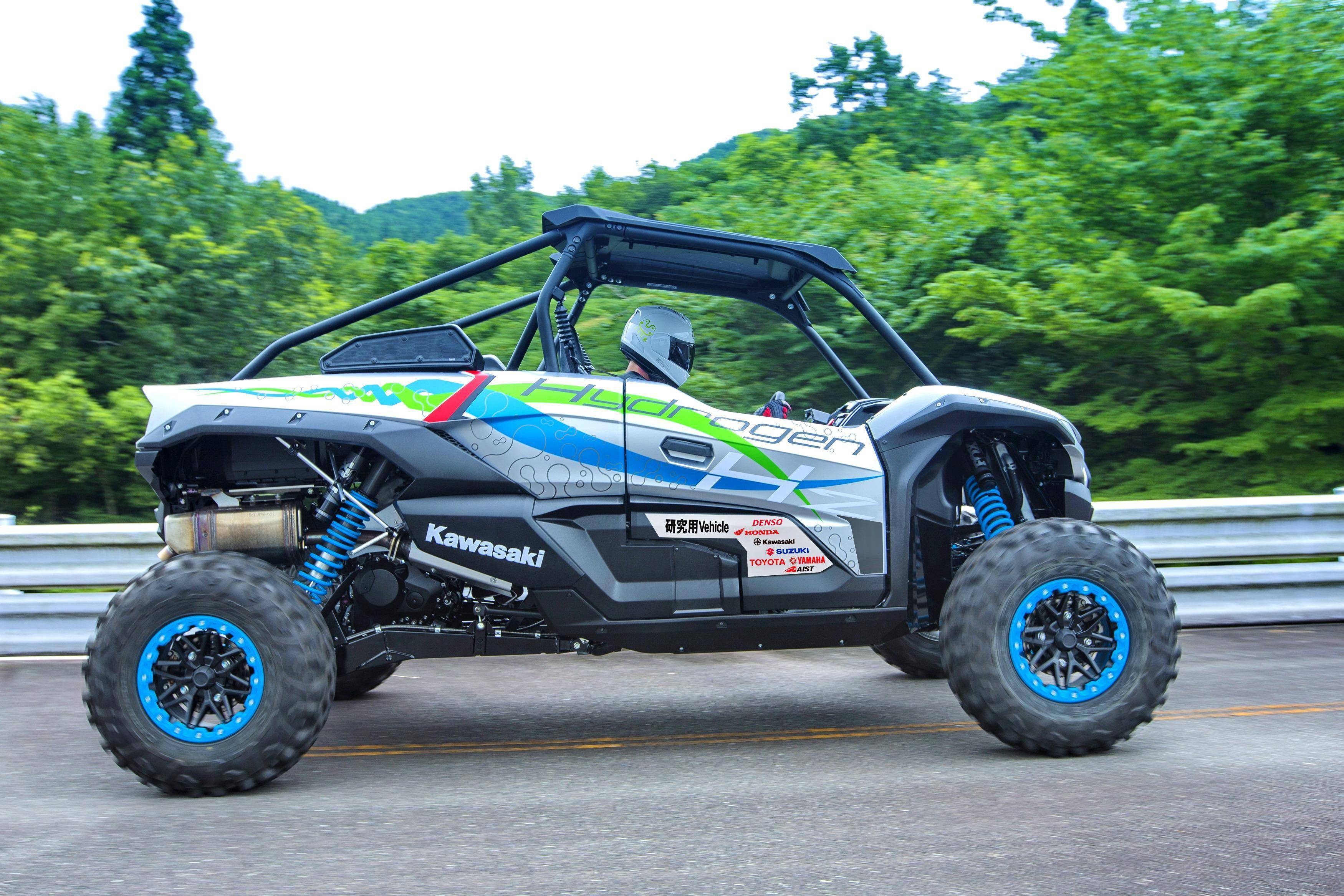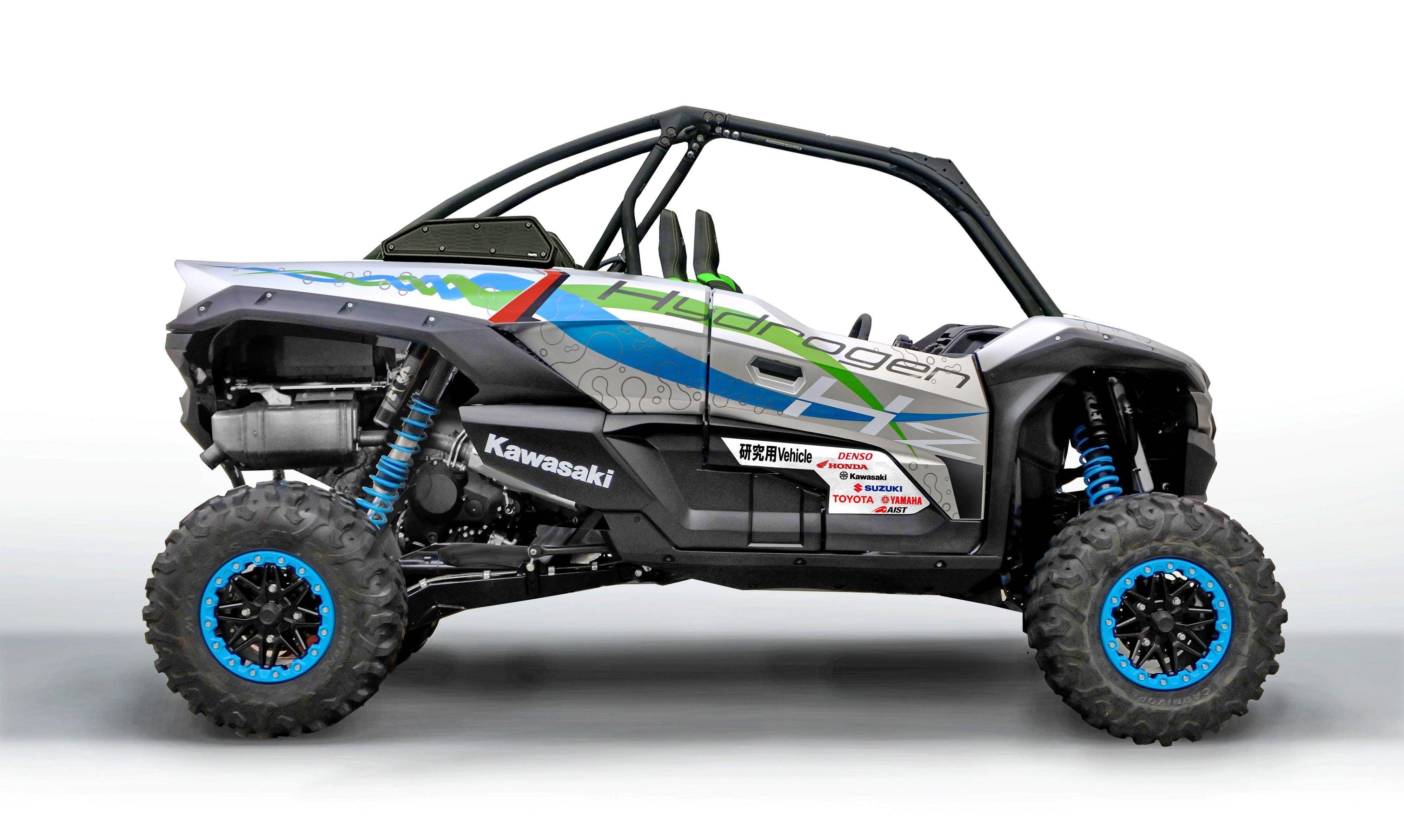 除了兩輪摩托車之外,Kawasaki 同時(shí)也發(fā)布了只有圖片、但沒有給出進(jìn)一步信息,搭載燃料氫發(fā)動(dòng)機(jī)的 ATV 研究用車。