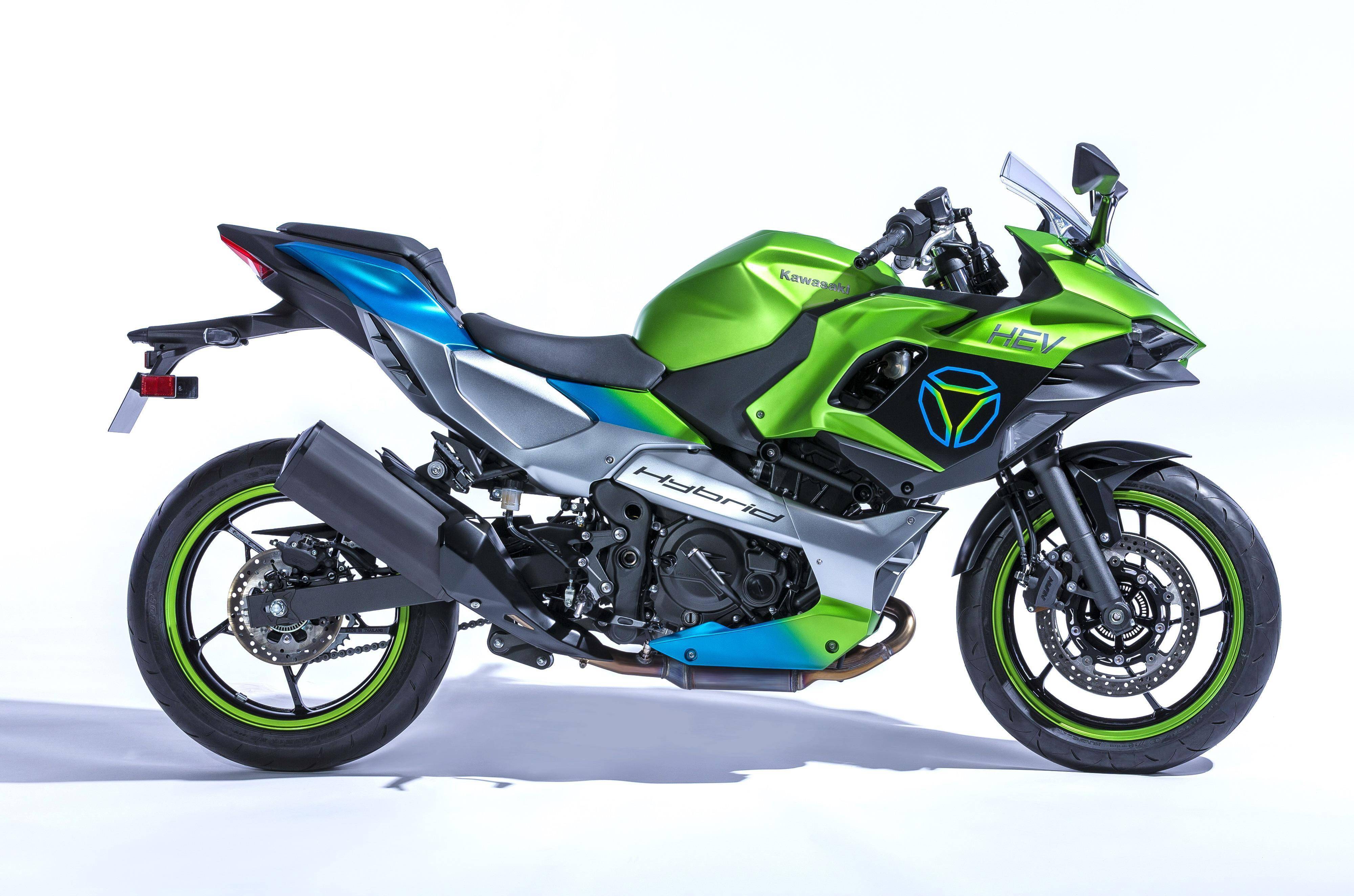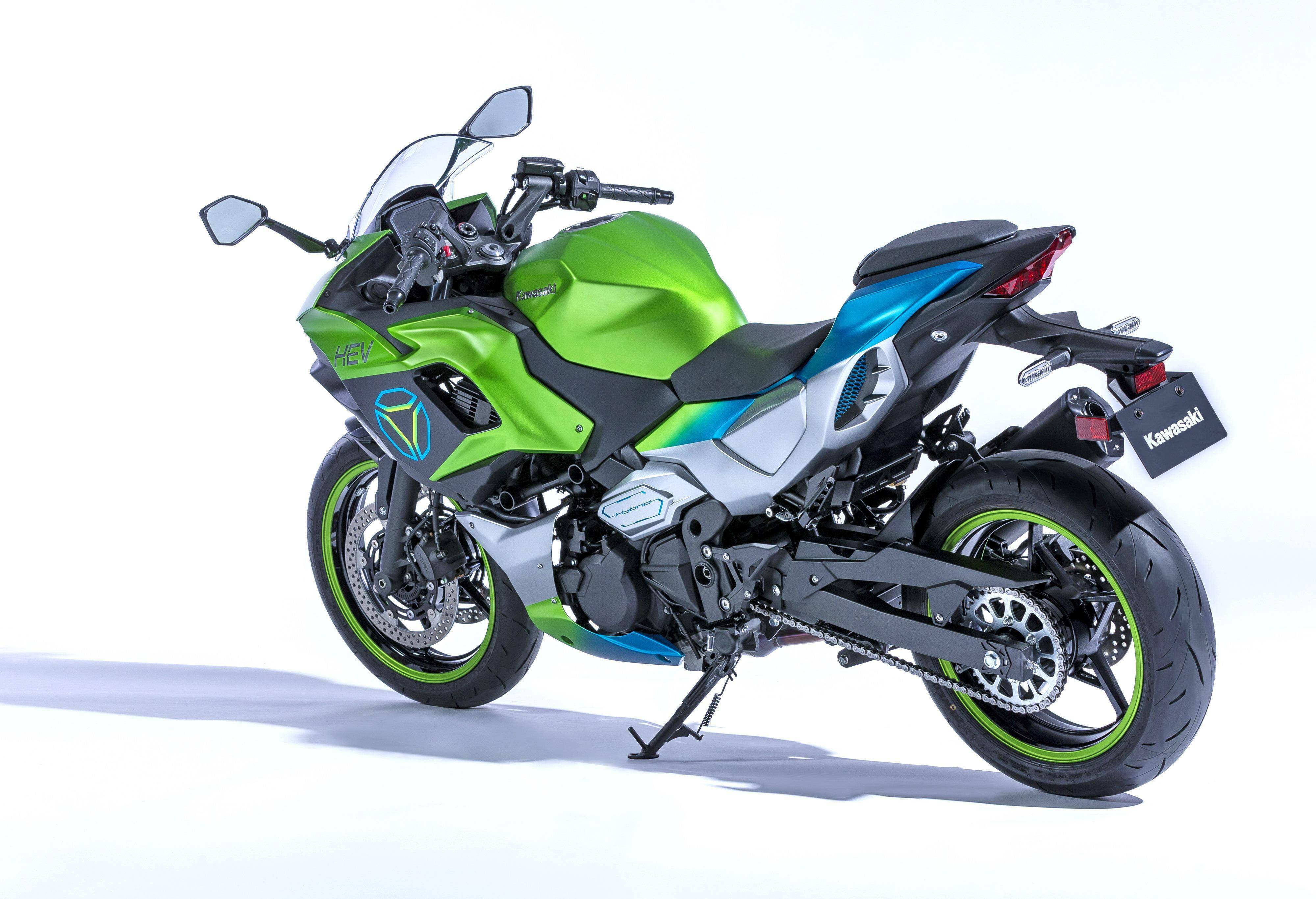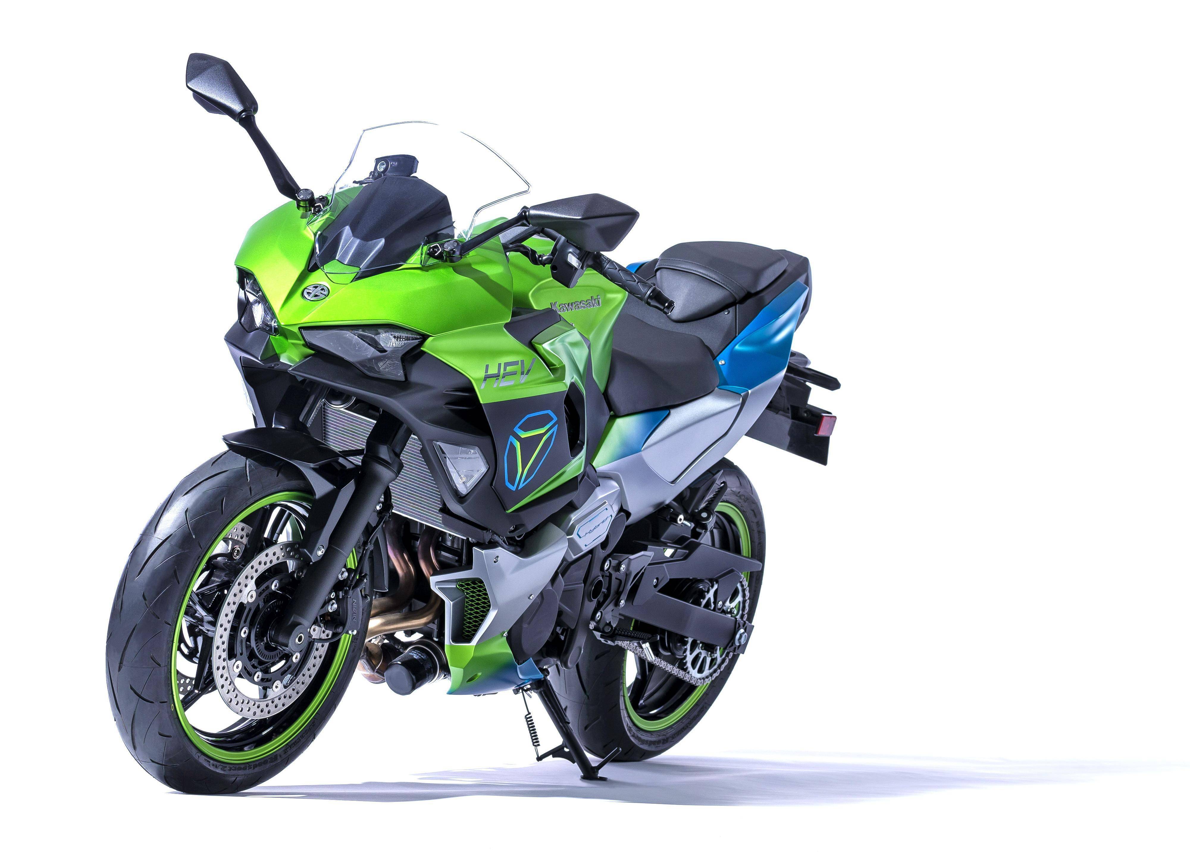 混合動(dòng)力的 HEV 原型車有著一個(gè)類似于 Ninja 400/650 的外觀風(fēng)格(Ninja 650 的前端 + Ninja 400 的后搖臂)和直列兩氣缸發(fā)動(dòng)機(jī),廠方未有公布 HEV 的更多信息。Kawasaki 稱,HEV 是他們的第一臺(tái)混合動(dòng)力摩托車原型,這副機(jī)器能夠快速、輕松地在內(nèi)燃機(jī)和電動(dòng)動(dòng)力之間切換,而該車已經(jīng)是廠方在 2024 年產(chǎn)品線計(jì)劃內(nèi)的一部分。