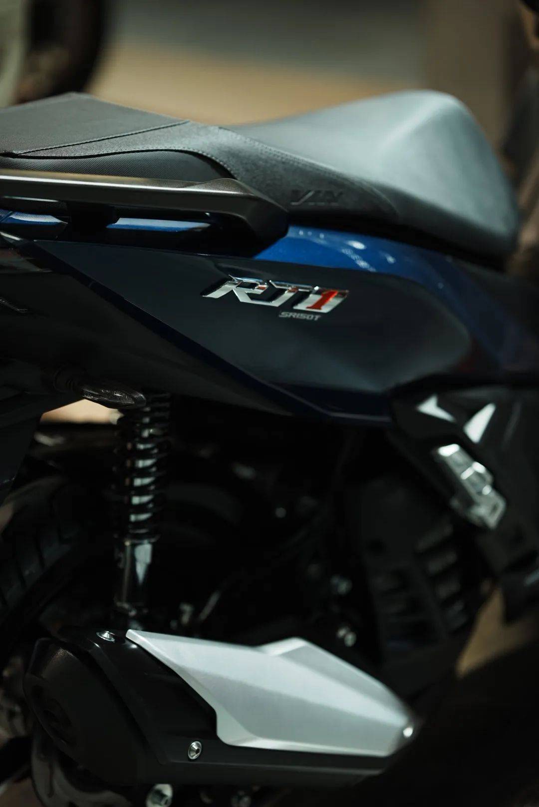 RT1同樣采用了帶有龍骨的車架設(shè)定,好處是車架剛性更強,能提供更好的運動性能,但壞處也顯而易見,就是在在實用性上會略遜于平踏車款。與多數(shù)同結(jié)構(gòu)的踏板一樣,RT1的油箱也位于龍骨處,容積為9L,按照經(jīng)驗來說,應(yīng)該能給這臺小車提供近400km的續(xù)航能力。