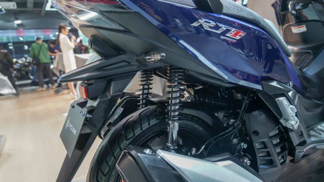 行走系統(tǒng),RT1配備前110/80/14,后120/70/14尺寸半熱熔輪胎,更大的輪胎也就代表這臺車擁有更高的通過能力以及更好的舒適性;配備正立式的前叉和雙邊后減震;前后均匹配單向雙活塞卡鉗,安全性配置上除了常見的雙通道ABS以外,還有上文我們提到過的可關(guān)閉的TCS。
