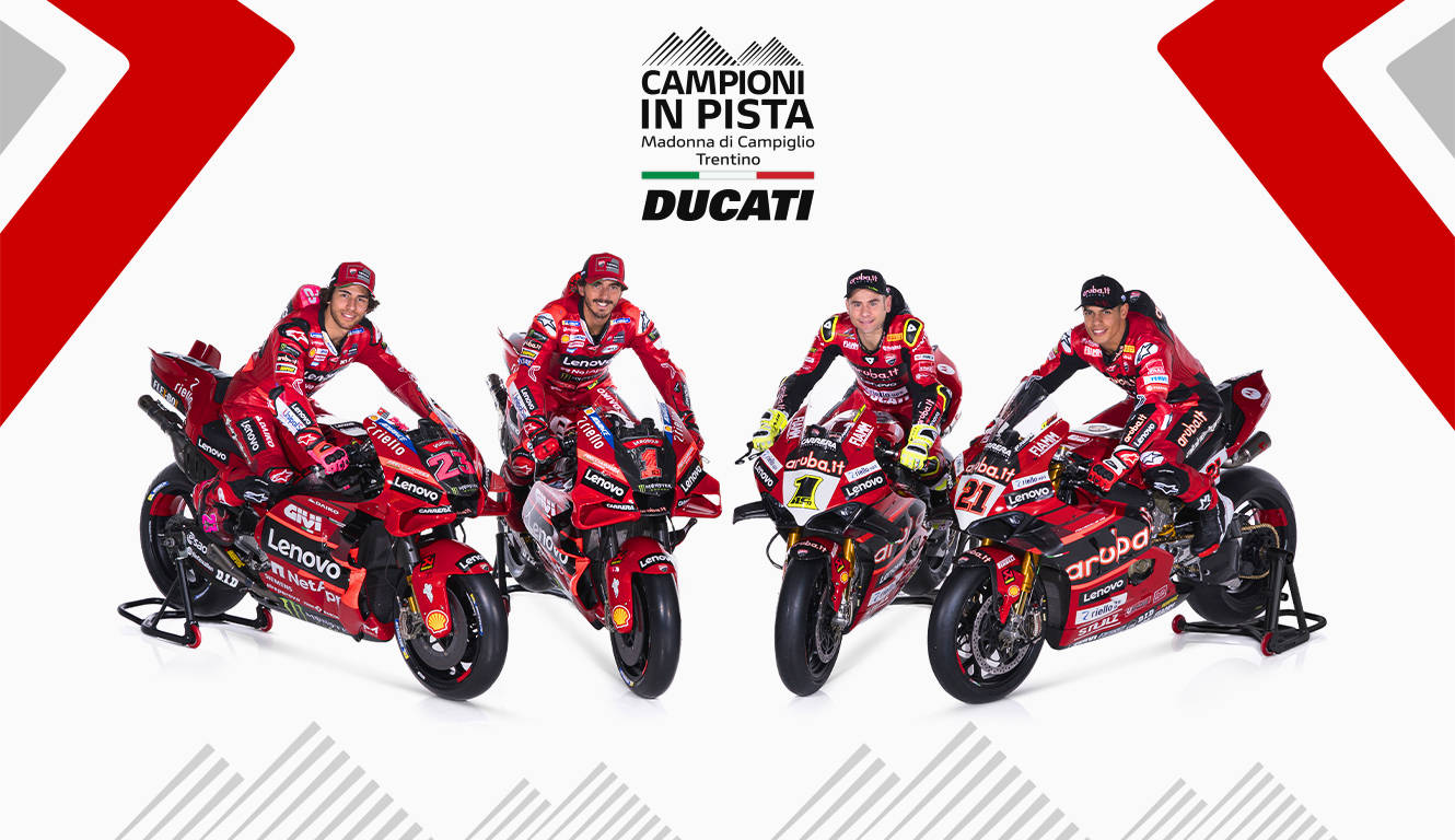 Ÿ 在意大利滑雪勝地 Madonna di Campiglio 舉行的 "Campioni in Pista" 慶功派對上,杜卡迪正式揭幕 2023 賽季 MotoGP 與 WorldSBK 賽車官方涂裝