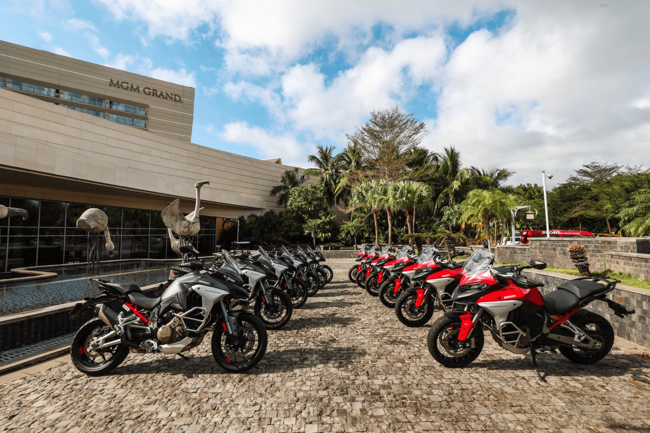 本次活動的座駕為杜卡迪全新攬途車型,通過舒適性、穩(wěn)定性和空氣動力學(xué)的創(chuàng)新,呈現(xiàn)出功能性與意大利設(shè)計(jì)美學(xué)的完美結(jié)合。新車裝配全新 166hp Granturismo V4 發(fā)動機(jī)、創(chuàng)新的底盤和優(yōu)異人體工程學(xué)設(shè)計(jì),配合先進(jìn)的杜卡迪電控系統(tǒng)以及世界領(lǐng)先的摩托車前后雙雷達(dá)系統(tǒng),帶來前所未有的樂趣、多功能和直觀的駕駛體驗(yàn)。