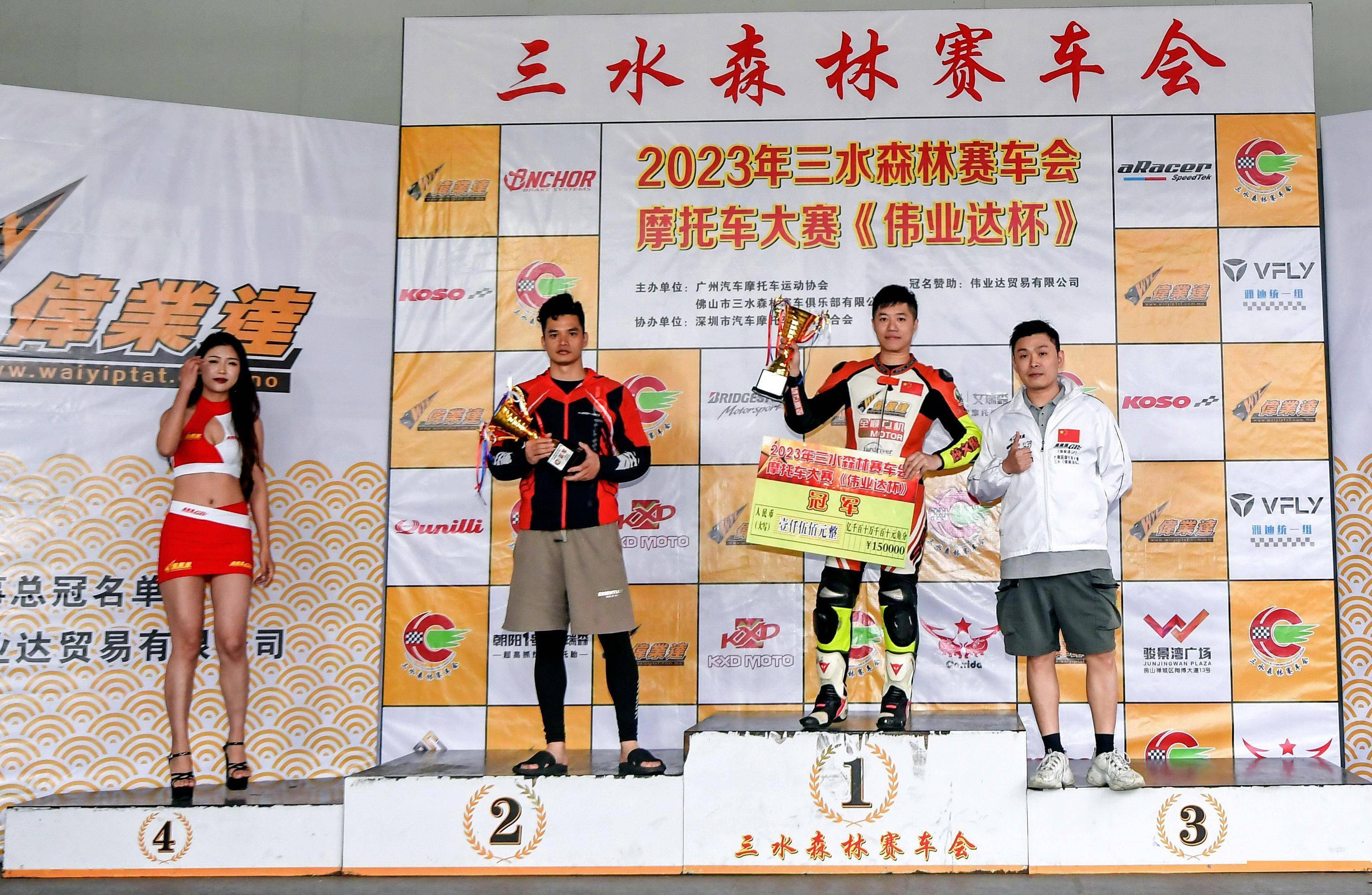 綜合兩節(jié)比賽的成績,全順賽車隊的薛文俊奪得了 2023 偉業(yè)達(dá) GP 三水森林賽車會摩托車大賽 偉業(yè)達(dá)杯 第一回合、電車公開組 A 組的冠軍。韋志煌奪得了 B 組的冠軍,尤立雄拿下了季軍。