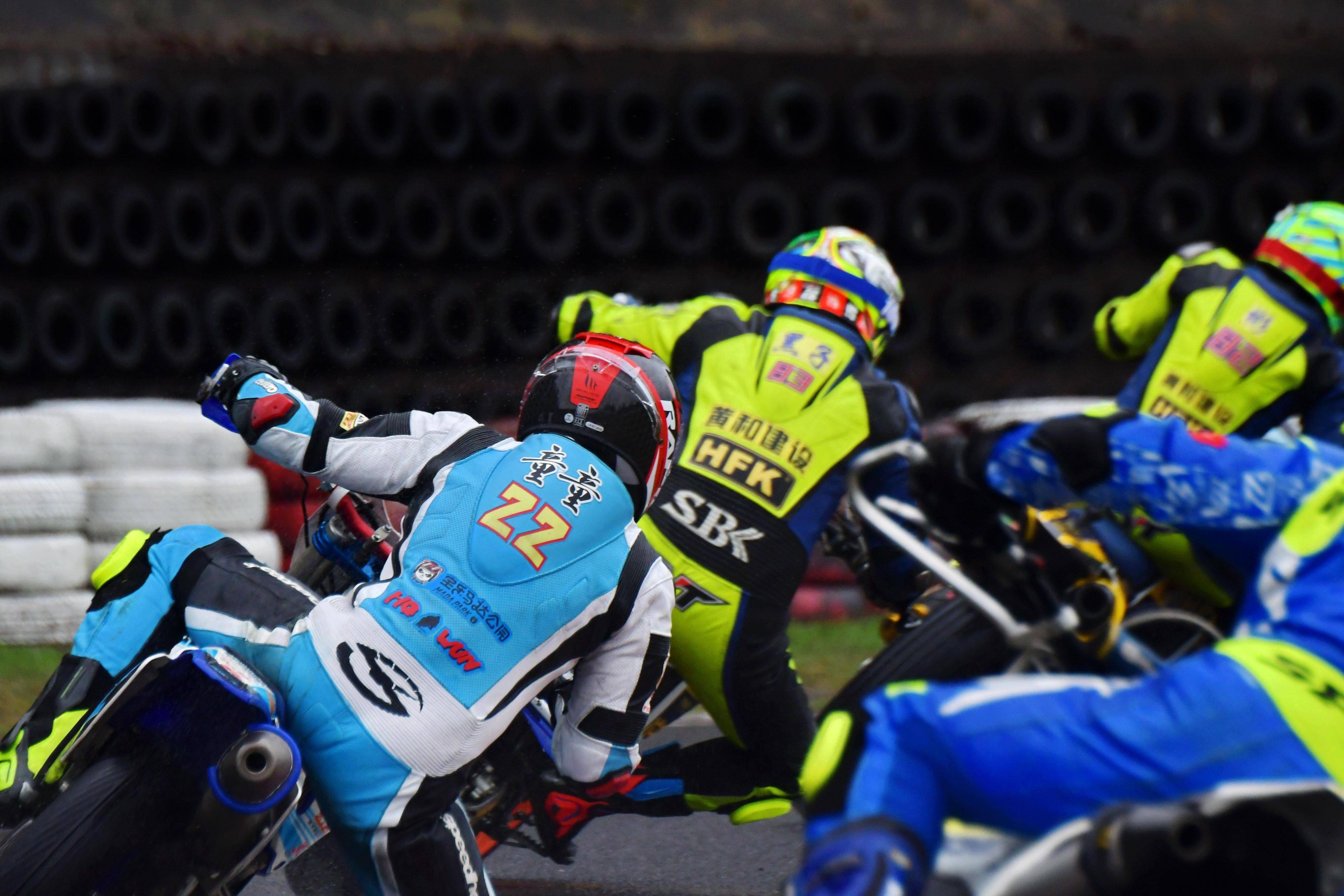 后面,同樣采用濕地胎的黃元彬盡管摔了一跤,但仍奪得了第二,59 號(hào)車的應(yīng)屆滑胎冠軍何志敏拿到了第三。