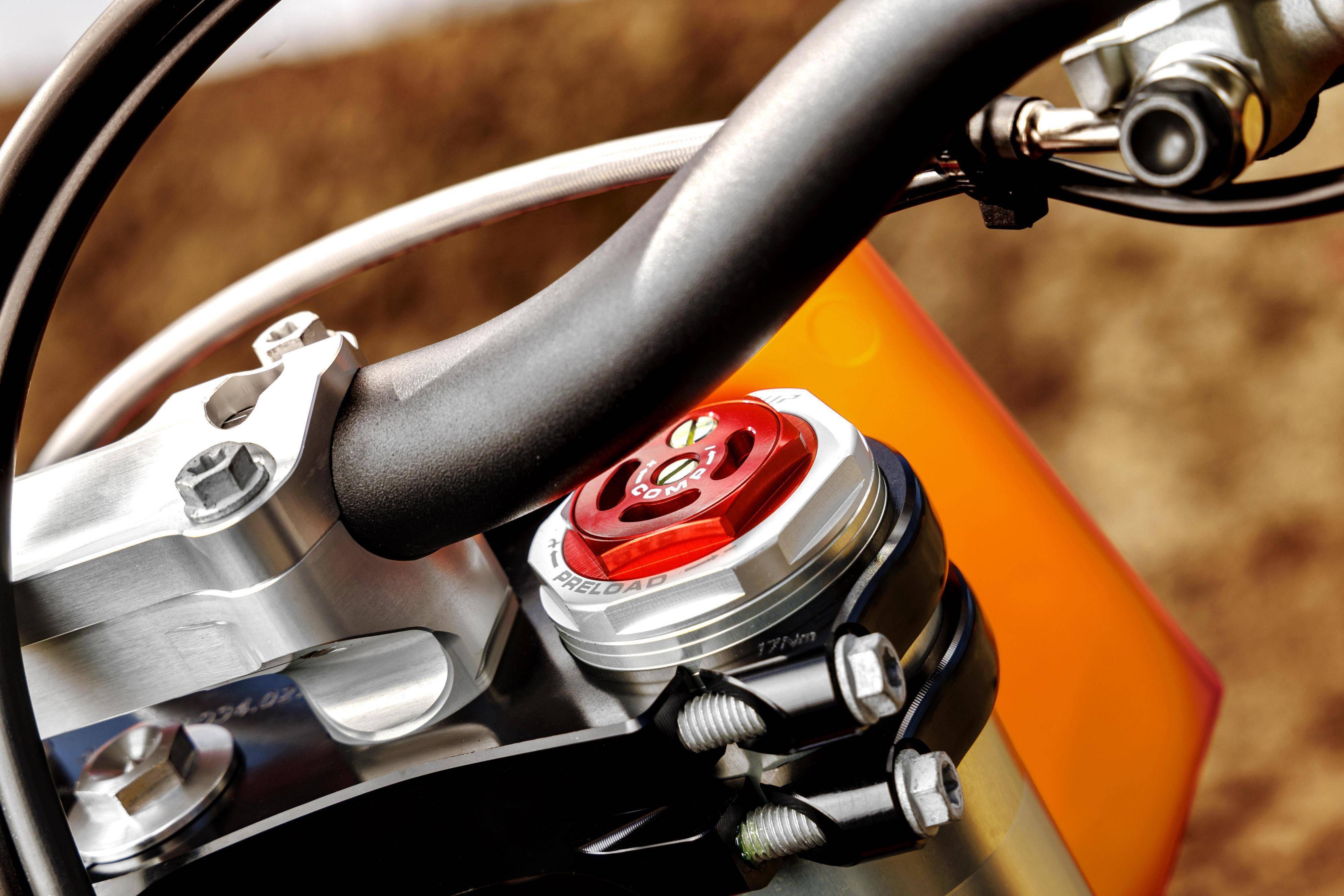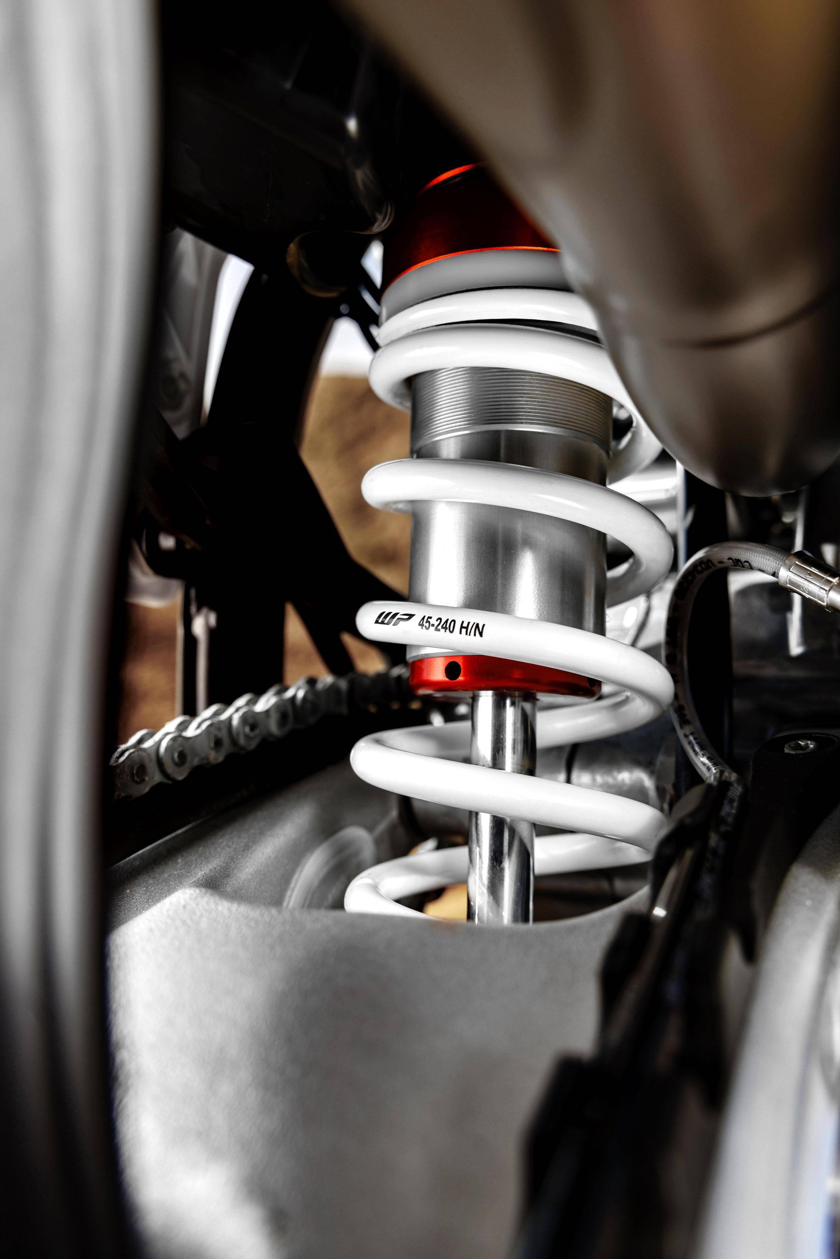 與 2023 款相比,新的 2024 年款車型最大的變化是前后懸掛系統(tǒng)經(jīng)過了新的設(shè)置,目標(biāo)是提高車輛的平衡性和舒適性,并同時(shí)增加轉(zhuǎn)向時(shí)的靈活性:叉芯口徑為 48 mm 、WP 配套的倒立式前叉,內(nèi)部的阻尼、觸底阻力經(jīng)過改進(jìn),讓前叉行程即使是在強(qiáng)力觸底之后、馬上就采取強(qiáng)力加速的動(dòng)作時(shí),依然能夠保持穩(wěn)定性;后面的 WP XACT 減震有著新的阻尼特性,可提供更好的牽引力和沖擊吸收。
