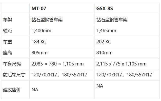 動(dòng)力適中、售價(jià)相對(duì)親民的中量級(jí)街車一直是眾多車友踏入大型重機(jī)的熱門首選,除了近期話題不斷的全新雙缸黃蜂本田 CB750 HORNET以及鈴木推出期待已久的GSX-8S,雅馬哈旗下暢銷的中量級(jí)街車MT-07也在2023年帶來(lái)小改款升級(jí), 本次就讓我們來(lái)比較看看堪稱雅馬哈長(zhǎng)青樹(shù)車款的MT-07是否能跟上全新問(wèn)世的鈴木 GSX-8S吧。本篇文章僅是帶大家針對(duì)車輛規(guī)格表進(jìn)行快速的認(rèn)識(shí)與比較,詳細(xì)車輛信息與細(xì)節(jié)可以前往雅馬哈 MT-07與鈴木 GSX-8S的文章會(huì)有更詳細(xì)的報(bào)道。雅馬哈旗下熱門暢銷車款MT-07全新登場(chǎng)的鈴木 GSX-8S引擎動(dòng)力數(shù)據(jù)首先先來(lái)比較看看大家最為在意的動(dòng)力部分,2023款的MT-07在動(dòng)力方面并未做出更新,同樣采用689 c.c.的CP2 水冷雙缸引擎,擁有最大馬力72.3hp@8,750rpm以及最大扭力67Nm@6,500rpm的輸出; 而在鈴木 GSX-8S部分,全新開(kāi)發(fā)的776c.c.并列雙缸引擎則擁有83hp@8,500rpm的最大馬力和78Nm@6,800rpm最大扭力; 以賬面數(shù)據(jù)來(lái)看,排氣量略大的鈴木 GSX-8S在動(dòng)力方面小幅領(lǐng)先。MT-07維持熟悉的CP2引擎擁有隨轉(zhuǎn)隨有的加速表現(xiàn)鈴木 GSX-8S新登場(chǎng)的776c.c.并列雙缸引擎能爆發(fā)出相當(dāng)不錯(cuò)的83匹動(dòng)力表現(xiàn)懸掛、剎車系統(tǒng)對(duì)于主打運(yùn)動(dòng)熱血的中量級(jí)街車來(lái)說(shuō),懸掛和剎車當(dāng)然也不能馬虎,接著我們就來(lái)PK一下MT-07與GSX-8S在懸掛以及剎車硬件規(guī)格上的配備吧。在硬件規(guī)格上,相對(duì)較為陽(yáng)春的配備仍是MT-07的硬傷而在鈴木部分,GSX-8S前方搭載41mm KYB倒立式前叉,行程130mm,后懸掛為KYB 多連桿中置單槍避震器,行程130mm,同樣具備預(yù)載可調(diào)功能; 剎車部分,鈴木 GSX-8S搭載NISSIN對(duì)向四活塞輻射卡鉗搭配310mm雙碟,后剎則為單活塞卡鉗配240mm單碟。GSX-8S前倒叉與輻射卡鉗的配置已逐漸成為市場(chǎng)標(biāo)配電控系統(tǒng)、車輛配備比較完基本硬體規(guī)格后,近年來(lái)車輛的電控與配備也是消費(fèi)者購(gòu)車相當(dāng)重視的項(xiàng)目,接著就讓我們來(lái)看看這兩輛車上分別有哪些好料電控與配備吧!2023款MT-07換上5寸TFT全彩屏幕,擁有兩種顯示模式快排僅有單向的升檔相當(dāng)可惜在鈴木 GSX-8S方面,GSX-8S擁有ABS、低轉(zhuǎn)輔助系統(tǒng)、三種騎乘模式可調(diào)以及進(jìn)退快排等多項(xiàng)實(shí)用電控系統(tǒng),此外,搭載的TCS循跡系統(tǒng)更可以獨(dú)立關(guān)閉,提供車主更具玩樂(lè)性的騎乘體驗(yàn)。相較之下,GSX-8S的電控豐富許多在硬件部分,GSX-8S同樣搭載5寸TFT全彩儀表,并配有鈴木 Easy Start一鍵啟動(dòng)系統(tǒng),此外,鈴木也為GSX-8S配上SCAS離合器輔助系統(tǒng),讓車主擁有更為順暢的降檔操作。車架、軸距、車重、尺碼、輪胎、建議售價(jià)PK完動(dòng)力、配備與電控之后,相信各位已經(jīng)對(duì)兩輛運(yùn)動(dòng)街車有基本的認(rèn)識(shí),最后帶大家比較一下兩臺(tái)車的車架、車重、座高、軸距、車身尺碼和輪胎等諸元規(guī)格。YAMAHA MT-07采用鉆石型鋼管車架、軸距為1,400mm、車重184公斤、座高為805mm、車身尺碼為2,085 x 780 x 1,105 mm、前后輪為120/70ZR17、180/55ZR17,建議售價(jià)尚未公布(海外售價(jià)8,199美元)。23款雅馬哈 MT-07在規(guī)格方面并未做出改動(dòng)(圖為現(xiàn)行式樣,僅供示意)鈴木 GSX-8S使用鉆石型鋼管車架、軸距為1,465mm、車重202公斤、座高為810mm、車身尺碼為2,115 x 775 x 1,105 mm、前后輪為120/70ZR17、180/55ZR17,建議售價(jià)尚未公布。鈴木 GSX-8S 車架采用全新開(kāi)發(fā)的設(shè)計(jì)結(jié)語(yǔ)以規(guī)格數(shù)據(jù)層面來(lái)看,雖然雅馬哈 MT-07配備看起來(lái)相對(duì)陽(yáng)春,動(dòng)力表現(xiàn)放在現(xiàn)行同級(jí)車款也不算非常亮眼,不過(guò)憑借著雅馬哈細(xì)膩的調(diào)校以及原先就有如輕檔車般的輕盈操控感受,換上全新TFT全彩儀表的MT-07仍舊是相當(dāng)不錯(cuò)的選擇。雅馬哈 MT-07本身便有優(yōu)異的表現(xiàn),加上市場(chǎng)豐富的改裝配備,MT-07在中量級(jí)市場(chǎng)仍有亮眼的銷售成績(jī)而全新問(wèn)世的鈴木 GSX-8S無(wú)論是在配備抑或是規(guī)格數(shù)據(jù)上確實(shí)都優(yōu)于MT-07,至于在售價(jià)方面會(huì)有多少差距有待觀察,值得一提的是,近日Suzuki Motorcycle TW也帶來(lái)令人興奮的導(dǎo)入驚喜,相信這輛有著充沛動(dòng)力與豐富電控的GSX-8S很快便能有進(jìn)一步的消息,有興趣的朋友可以好好期待啦。最后也再次強(qiáng)調(diào),以上分析皆是從車輛的紙上規(guī)格層面來(lái)做的PK,車輛究竟適不適合自己,終究還是要回到每一位騎士自身的條件來(lái)判斷,建議大家還是可以實(shí)際去門市、展間體驗(yàn)試乘,才能對(duì)喜愛(ài)的車款有更進(jìn)一步的了解與認(rèn)識(shí)!