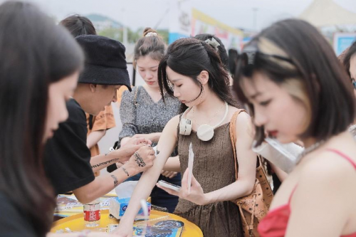 現(xiàn)場(chǎng),獵變?yōu)榇蠹規(guī)?lái)了潮酷Style的紋身貼紙,不少機(jī)車愛(ài)好者被吸引前來(lái),紛紛聚集,貼上這屬于獵變騎士的印記!