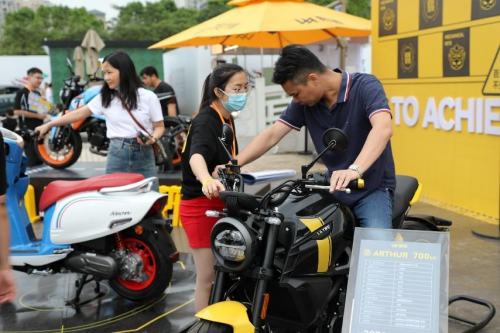 除了精彩的舞臺(tái)演出,作為本次音樂(lè)節(jié)的贊助商,獵變摩托攜品牌IP形象——小獵,也亮相本次音樂(lè)節(jié),為機(jī)車愛(ài)好者打造了一個(gè)十分酷炫的打卡地。在品牌攤位前,獵變帶來(lái)了海天一瑟“700”,翹頭車特技體驗(yàn)讓不少人駐足拍照和體驗(yàn),還有萌趣踏板“霓”125,也讓大家近距離感受到屬于機(jī)械寵物的魅力。