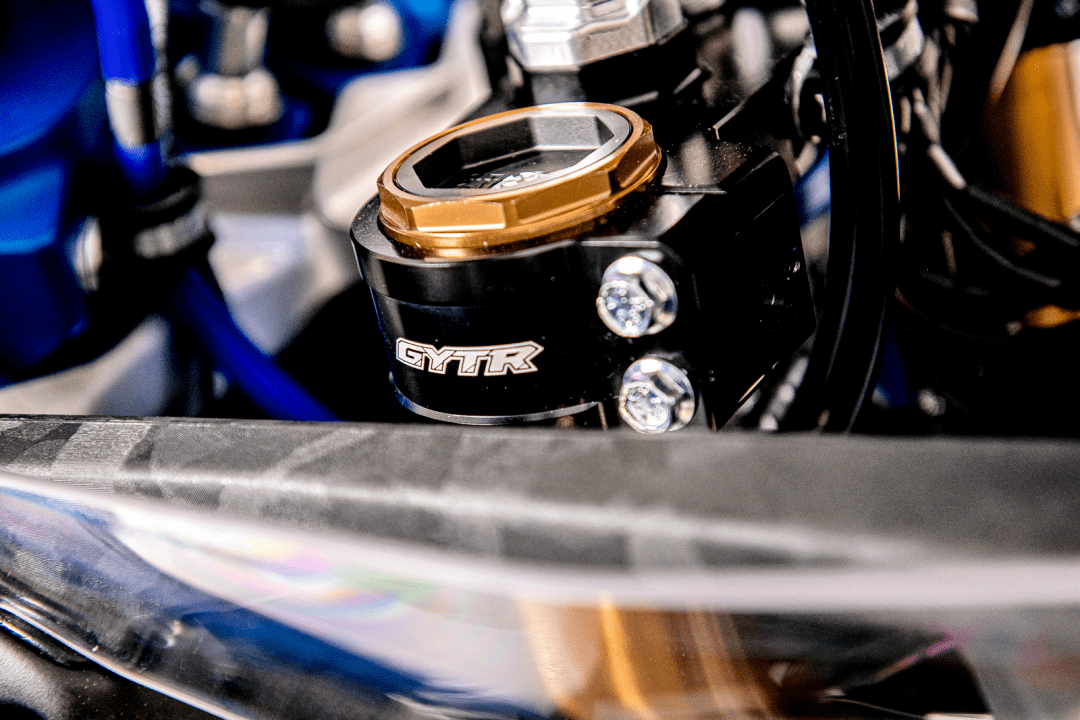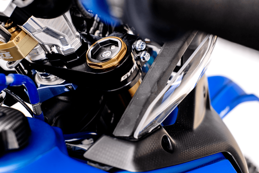 3、叉芯口徑為 48 mm 的 KYB 前叉,CNC 加工而成的上下三星(前叉三角臺),提高更好的剛性;