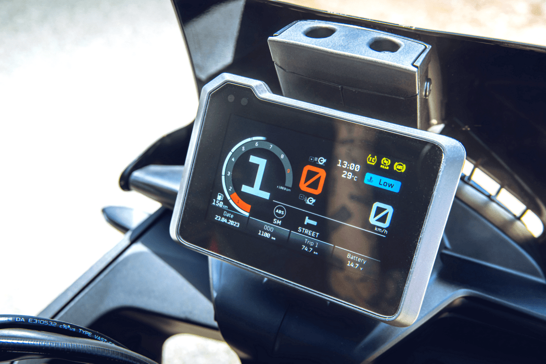 6、先進(jìn)的 5 英寸 TFT 儀表板,表面由光學(xué)粘合的礦物玻璃制成,具有防刮和防眩光功能。信息顯示功能方面,可根據(jù)騎士的個(gè)人偏好而完全定制;