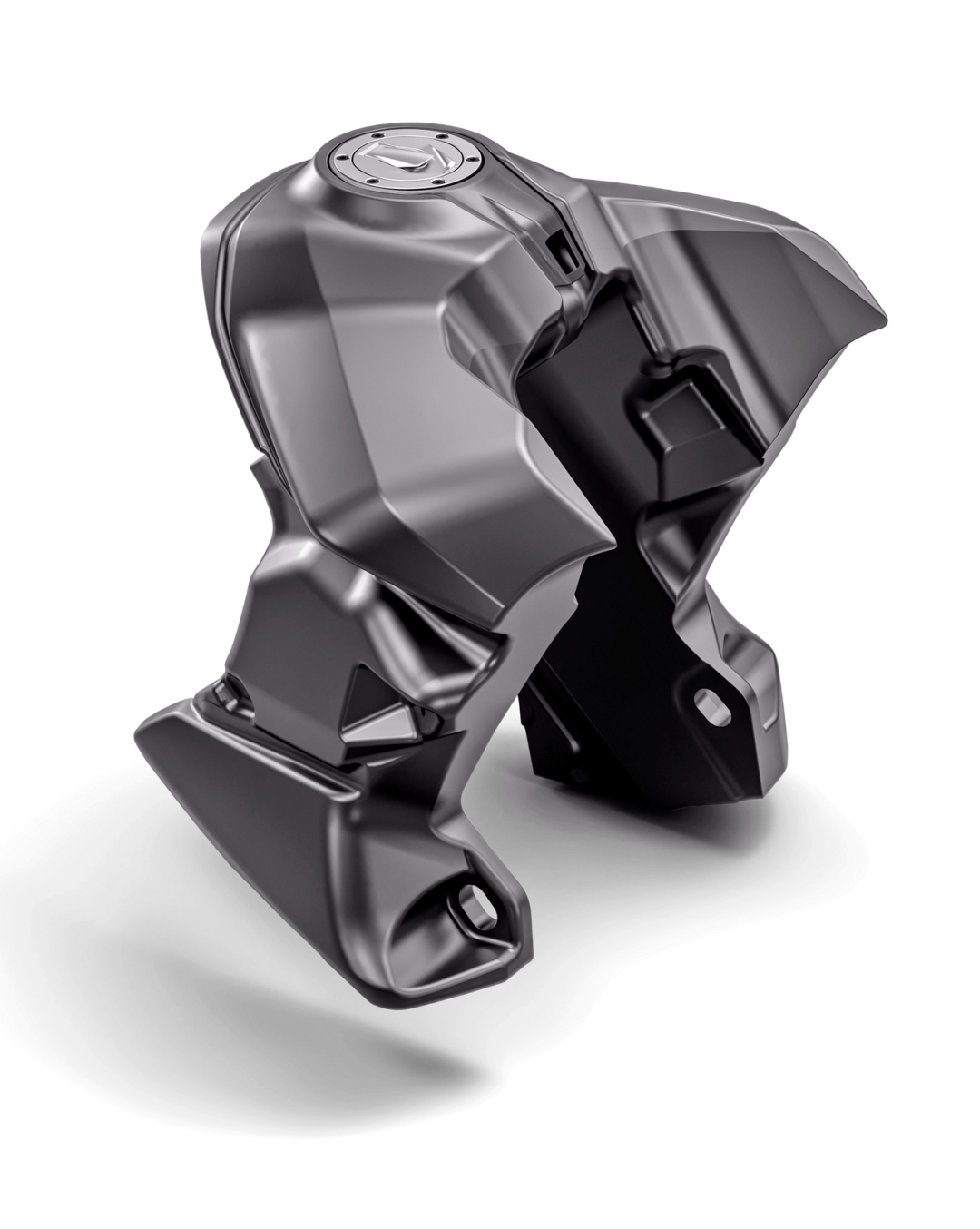 4、油箱采用了符合人體工程學(xué)的全新設(shè)計(jì),針對(duì) 890 SMT 進(jìn)行了 “ 瘦身 ” 處理,其輪廓可以讓騎士更容易地跨上車輛,與 Supermoto 風(fēng)格的鞍座相結(jié)合之下,既緊湊、同時(shí)又可以便于騎士在駕駛過(guò)程中出現(xiàn)的各種動(dòng)作;