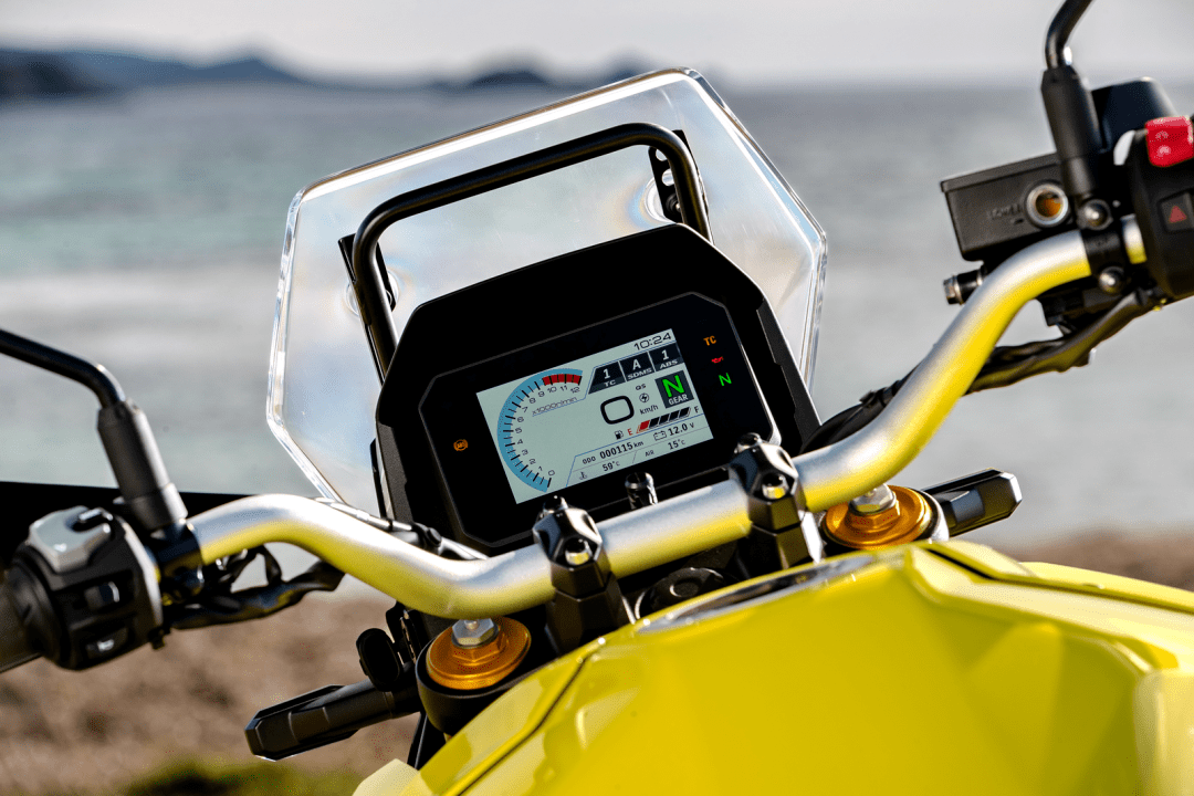 車體方面,新車采用一副鋼管式的車架,有著一個與旗艦級車型 DL1000 V-Strom 相近的外觀造型,配備了長行程的前、后懸掛系統(tǒng)、數(shù)字式的儀表板,前 21、后 17 英寸的輪框。電控系統(tǒng)則是集成了 S.I.R.S(SUZUKI Intelligent Ride System,Suzuki 智能騎行系統(tǒng)),該系統(tǒng)之下,包括 SDMS 可選騎行模式、STCS 牽引力控制、電控油門、雙向快速換檔等的子系統(tǒng)。