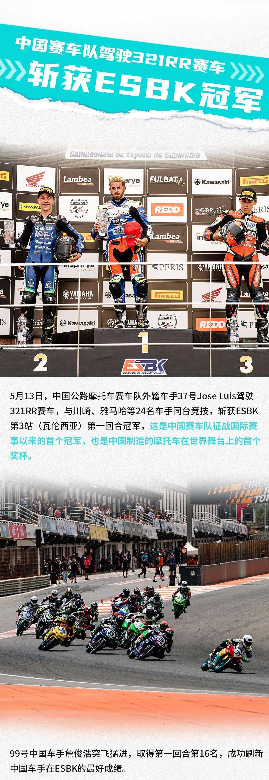 核心提示:中國賽車隊駕駛321RR賽車斬獲ESBK冠軍
