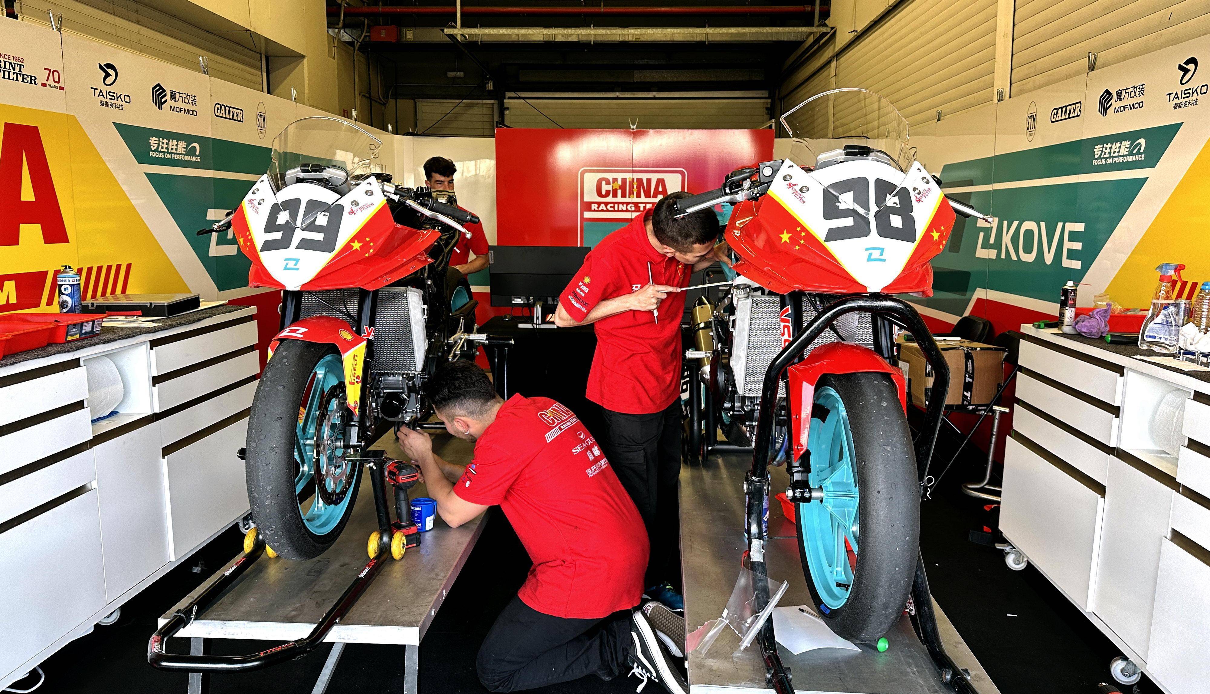 兩位中國車手所使用的、最新工廠規(guī)格的凱越 321 賽車,從表面上去看,消聲器、前叉外部組件,與國內(nèi)的賽道版沒有太大的差異。但有著 YSS 優(yōu)化的前叉芯和后減震,Solo 的快速換檔系統(tǒng)、儀表板(估計 ECU 也是 Solo 的 FIM 指定規(guī)格),都意味著這臺工廠賽車所承擔(dān)著的、不是一個輕松的任務(wù)。