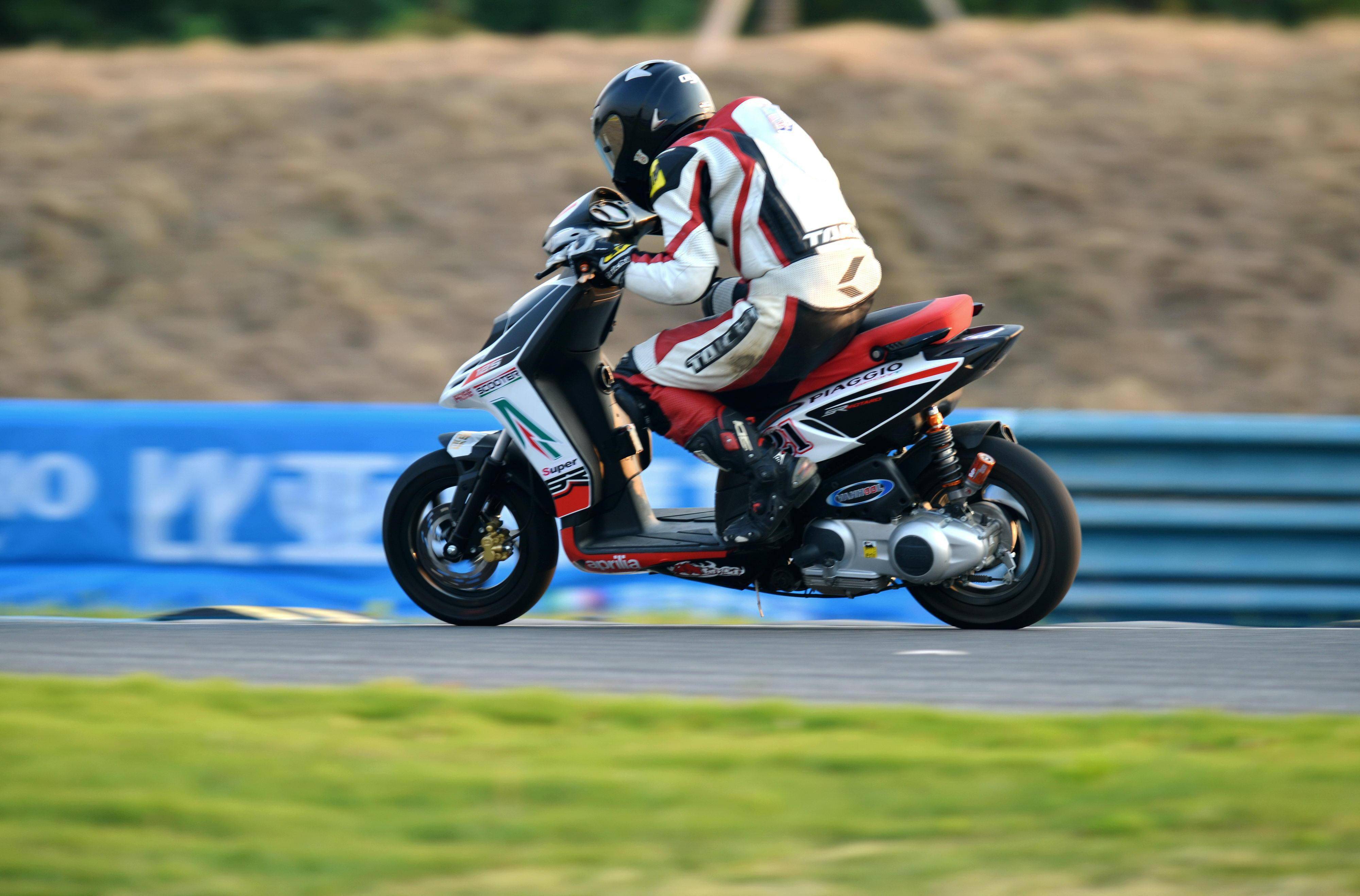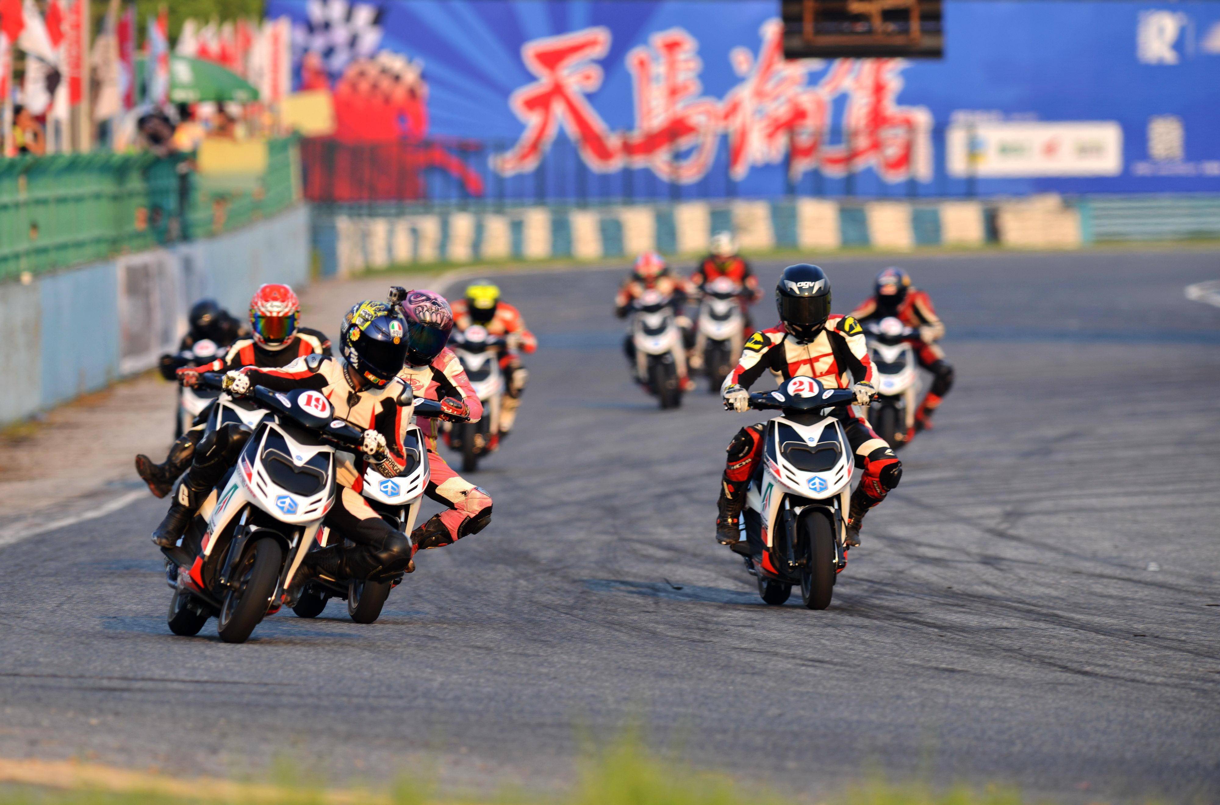 下面的圖片,2013 年 CRRC 全國(guó)公路錦標(biāo)賽上海站暨天馬論駕,參加比亞喬踏板組賽事、駕駛著 21 號(hào)車(chē)的王橋(資料圖片)。