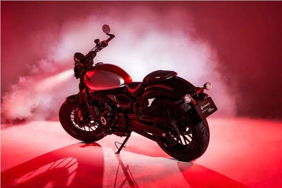 雙座為Cruiser風(fēng)格,目前已經(jīng)無限接近量產(chǎn)狀態(tài),它的靈感來自午夜的一杯深邃閃爍的波爾多紅酒,飽滿的水滴形油箱,金屬光澤的分色設(shè)計(jì),以及印花皮革黑色坐墊,希望能表達(dá)出一份沉穩(wěn)優(yōu)雅、久經(jīng)沉淀的年份感。