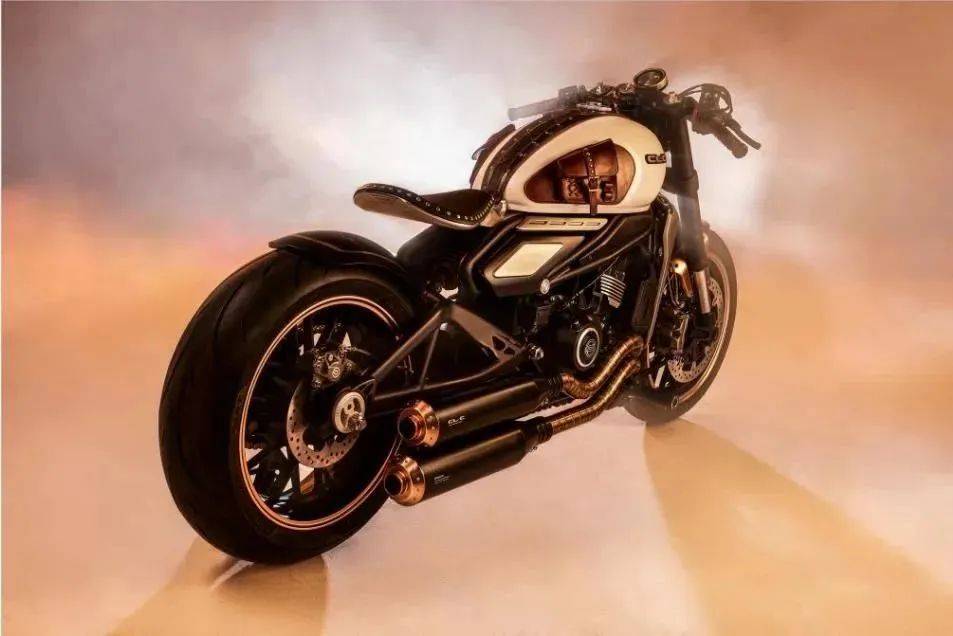 亮相的單座為Bobber風(fēng)格,是基于量產(chǎn)版的改裝車,充滿肌肉金屬質(zhì)感的外形搭配特調(diào)偏暖的白色,油箱上的意大利進(jìn)口頭層植鞣皮裝飾品,全手工打磨,千錘百煉造就了它藝術(shù)品的格調(diào)和品味。