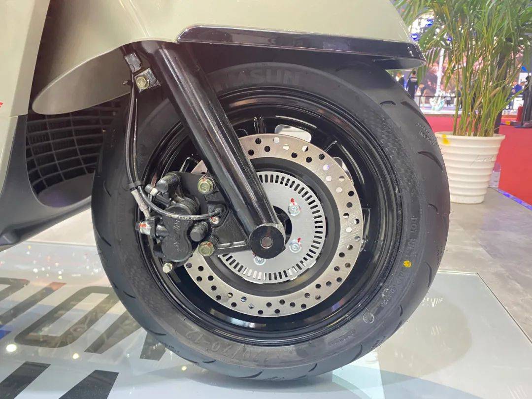 騰森品牌輪胎,日信品牌的單向雙活塞卡剎車鉗。且配備了前后KYB品牌減震,讓整體的騎乘舒適性又高了一個臺階。