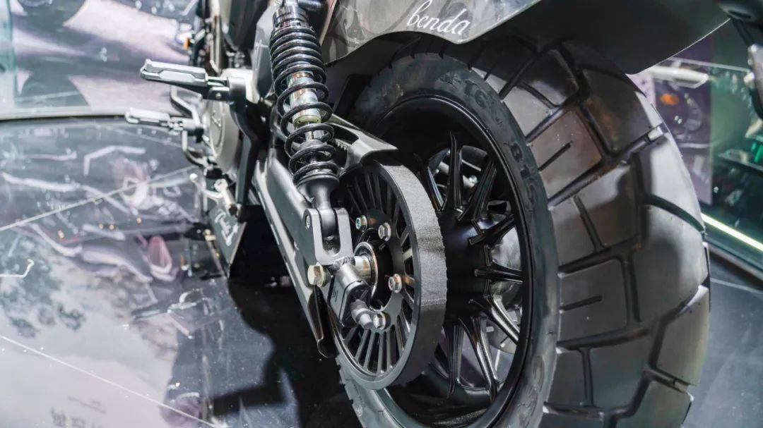 關鍵配置一步到位,前單碟對四活塞卡鉗卡鉗制動,后對雙活塞卡鉗制動,前倒置減震、后預載多段可調(diào)雙彈簧減震;鋁合金后搖臂、皮帶傳動,標配ABS、可關閉的TCS。
