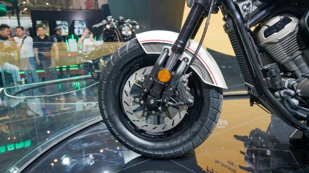 金吉拉450的尺寸變大了,其軸距更長,前后輪胎也變成更為寬大的150和180,視覺上氣場十足,定位于中大型城市巡航。